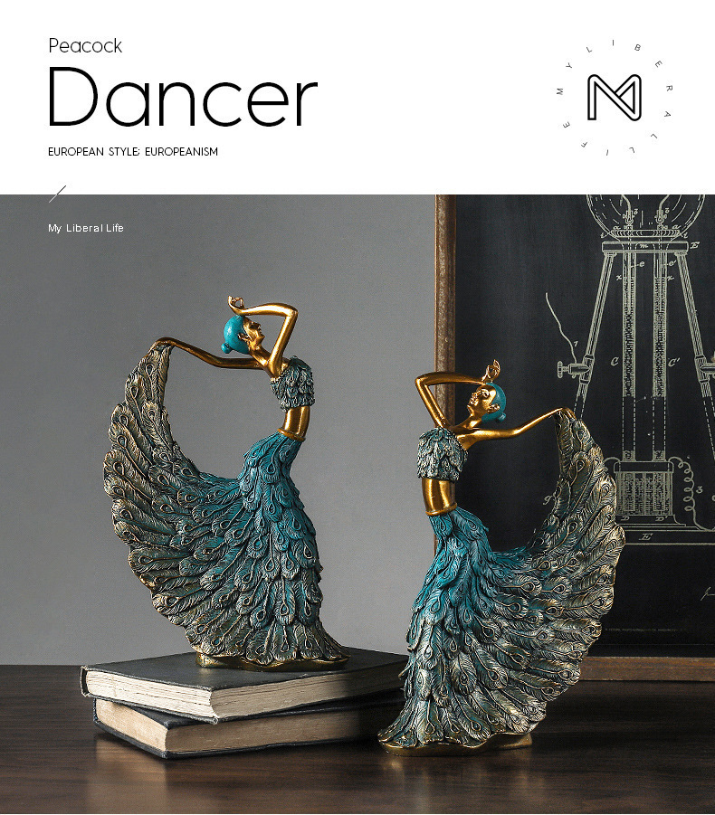 유럽 고전 창조적 인 공작 무용수 우아한 아름다움 공예 수지 장식품 홈 액세서리 웨딩 룸 장식
