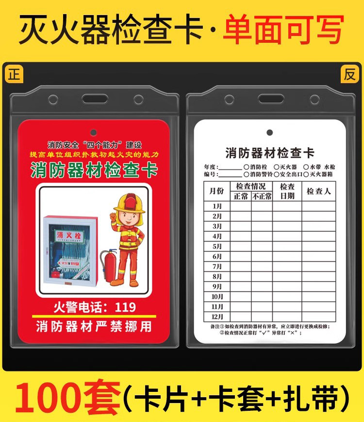 消防器材灭火器消防栓检查卡消火栓养护双面登记卡消防检查记录卡