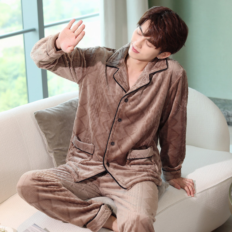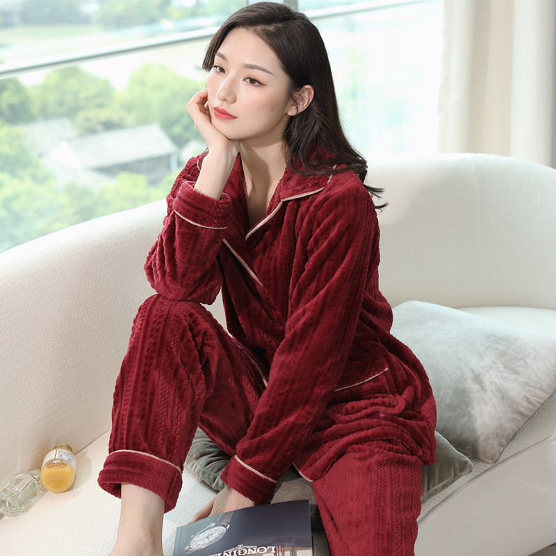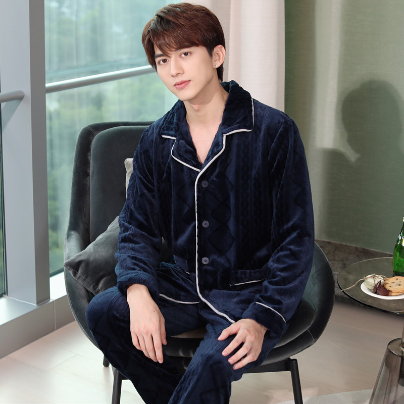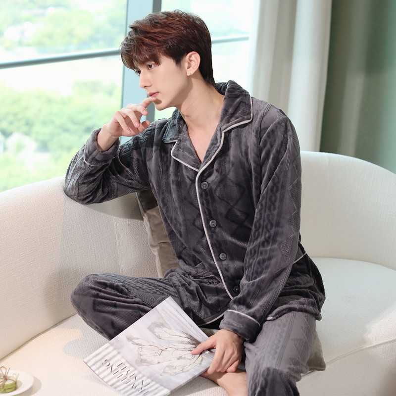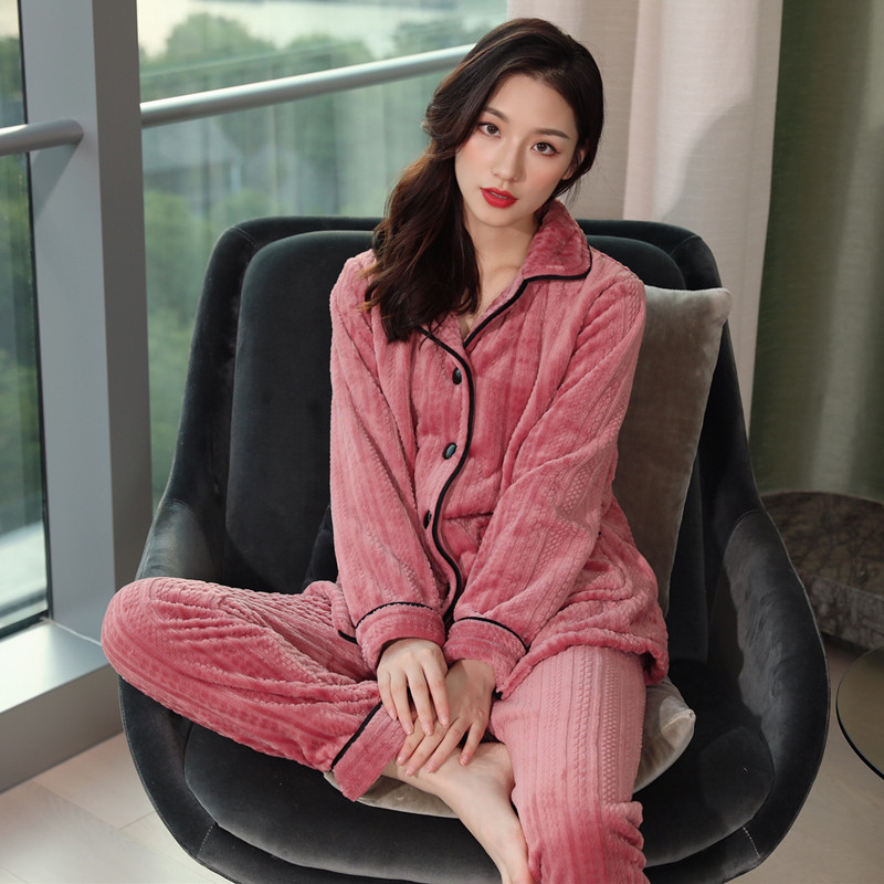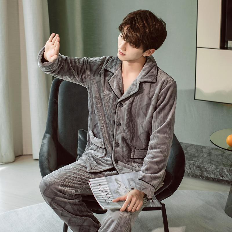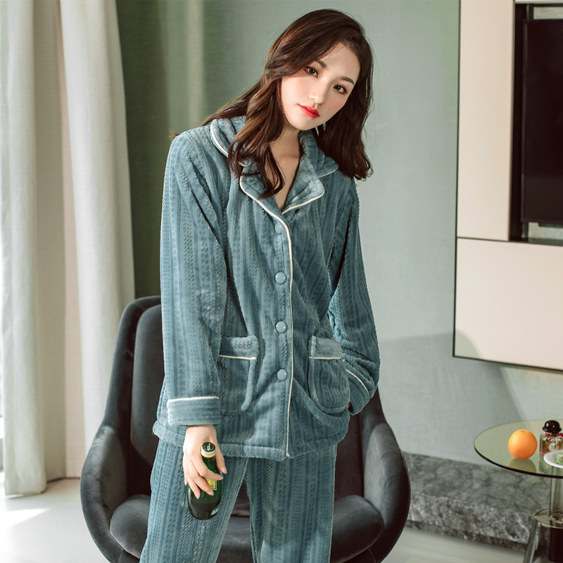 커플 잠옷 여자의 가을과 겨울 산호 양털 겨울 기모 두꺼운 따뜻한 플란넬 가정 의류 남자의 겨울 세트
