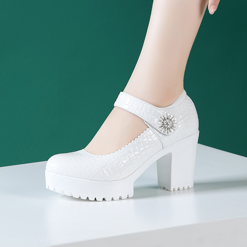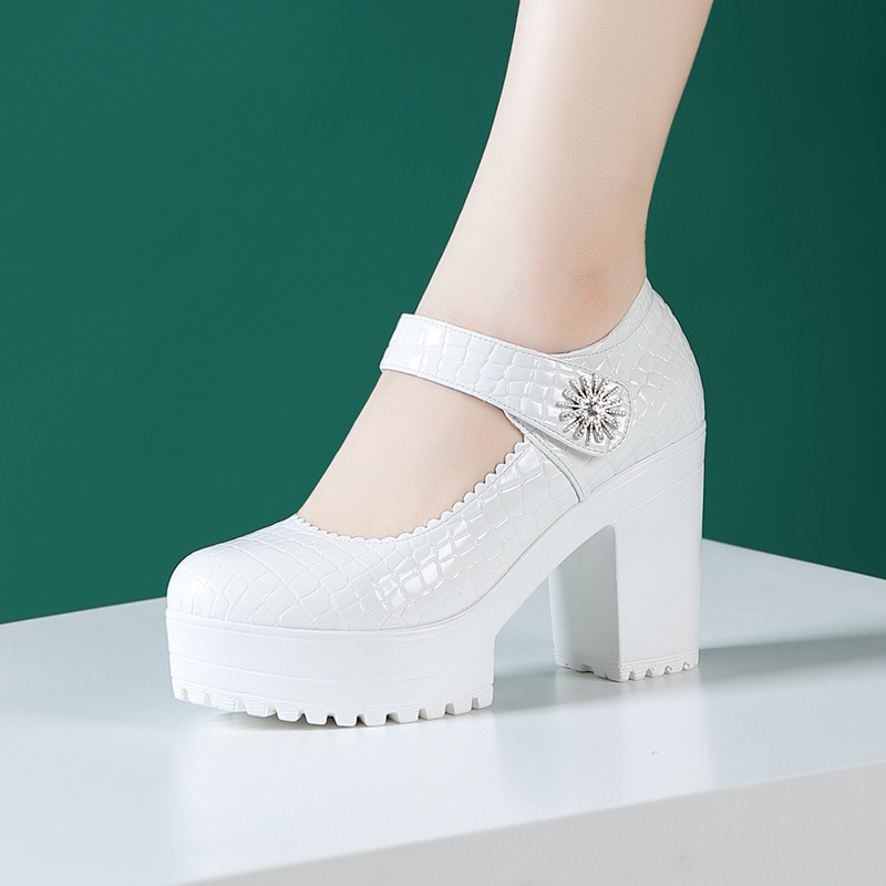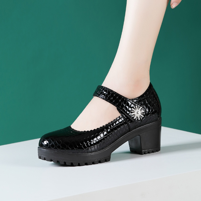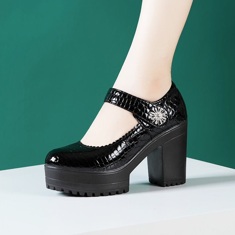 치파오 패션쇼 여성 신발 악어 프린트 특허 가죽 하이힐 패션쇼 모델 트레이닝 가죽 신발 플랫폼 두꺼운 굽 신발스토어 가기