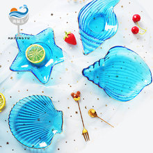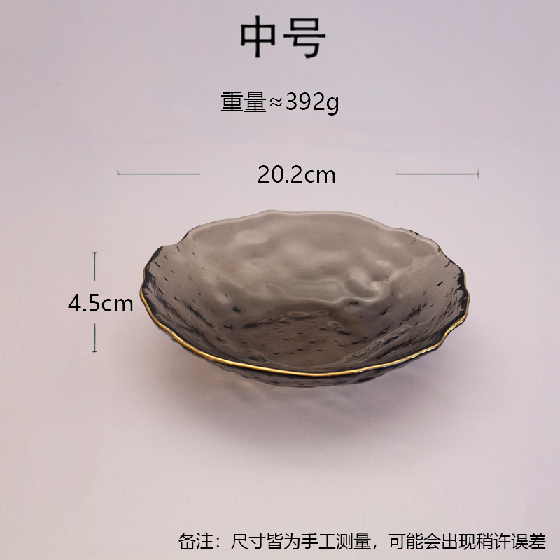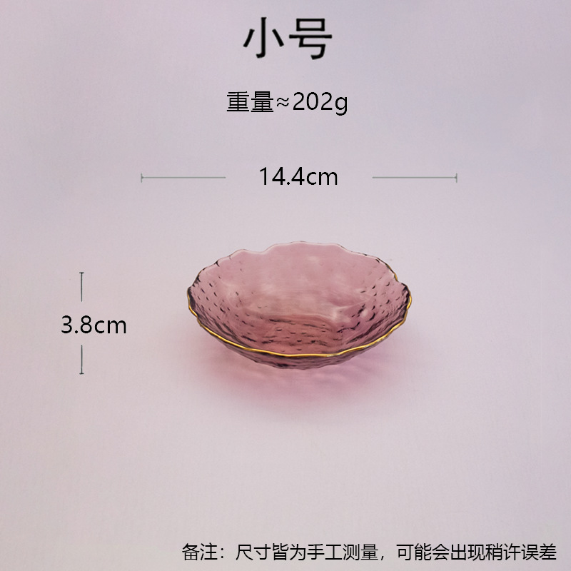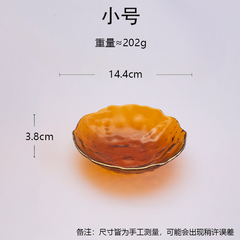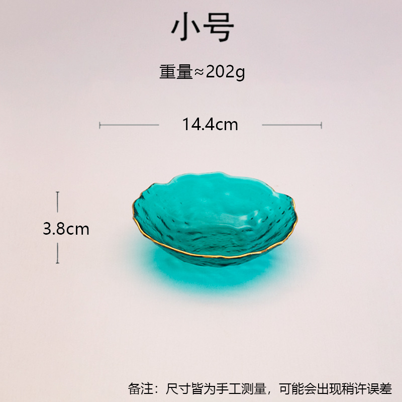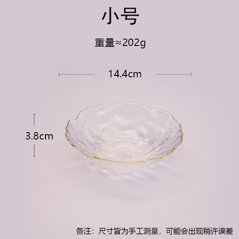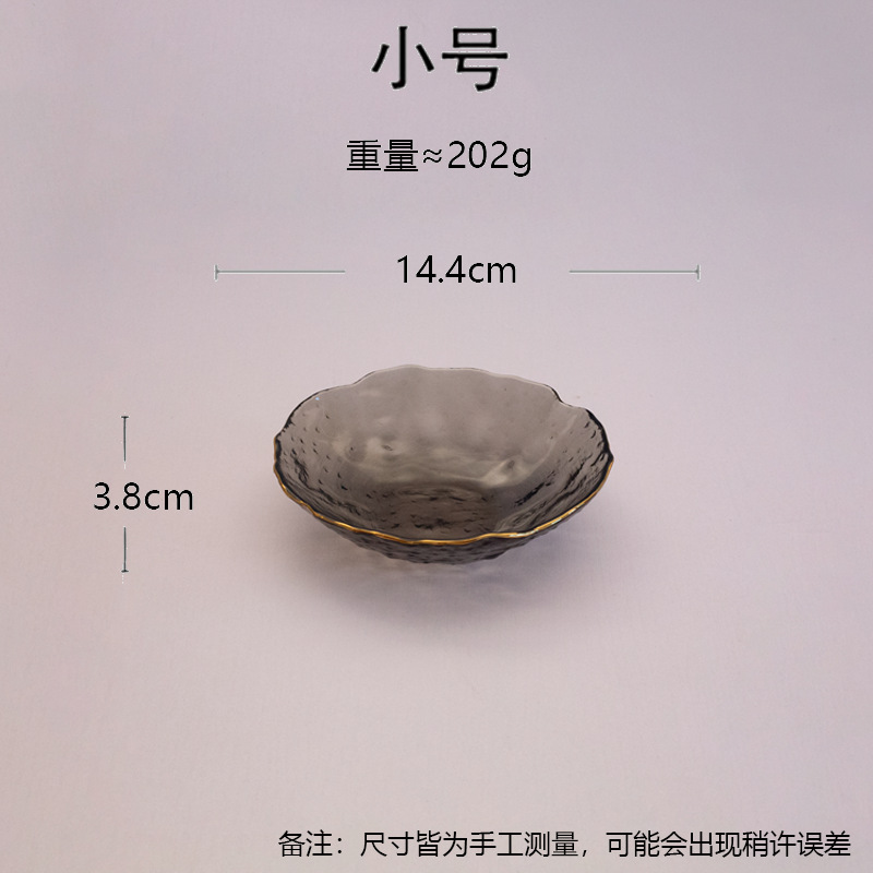 일본식 금테 레인포인트 유리 접시, 망치질 무늬 연잎 모양 식기, 내열성 가정용 거실 비정형 과일 접시 세트스토어 가기