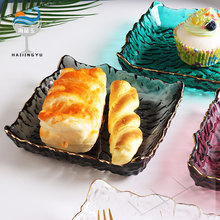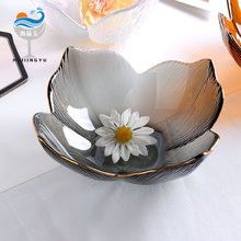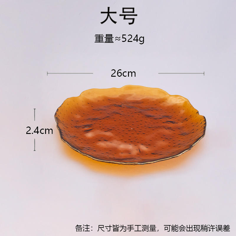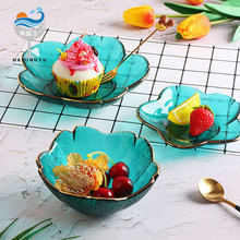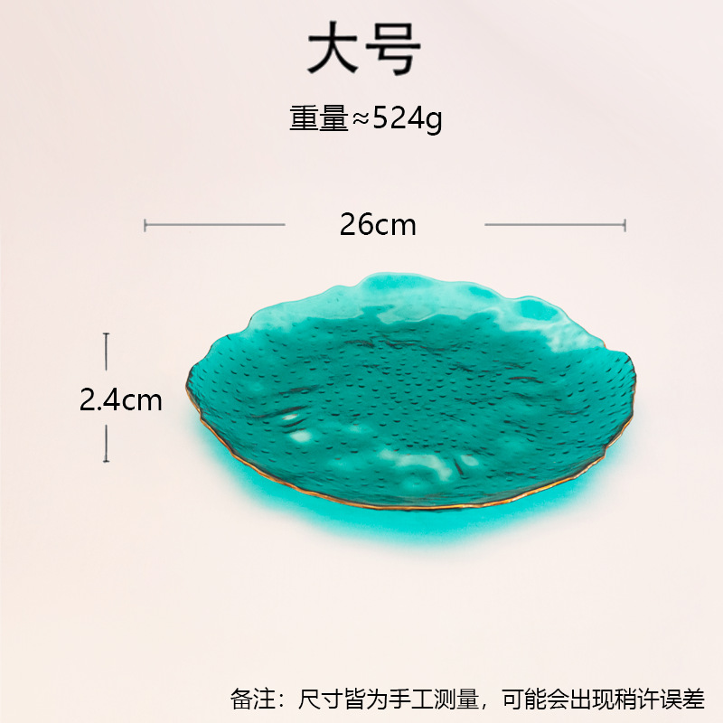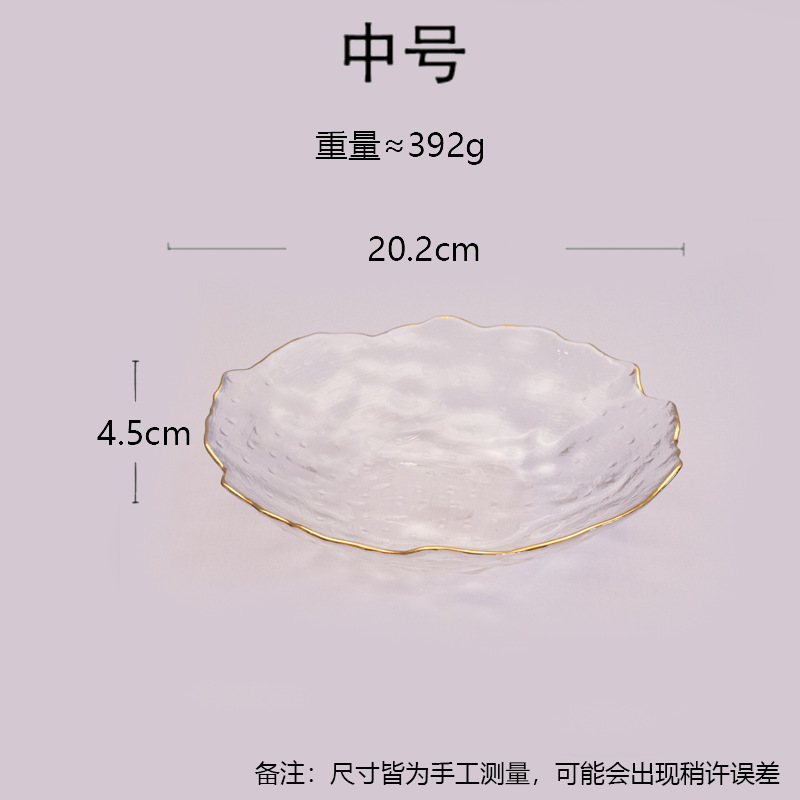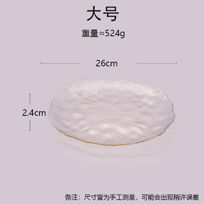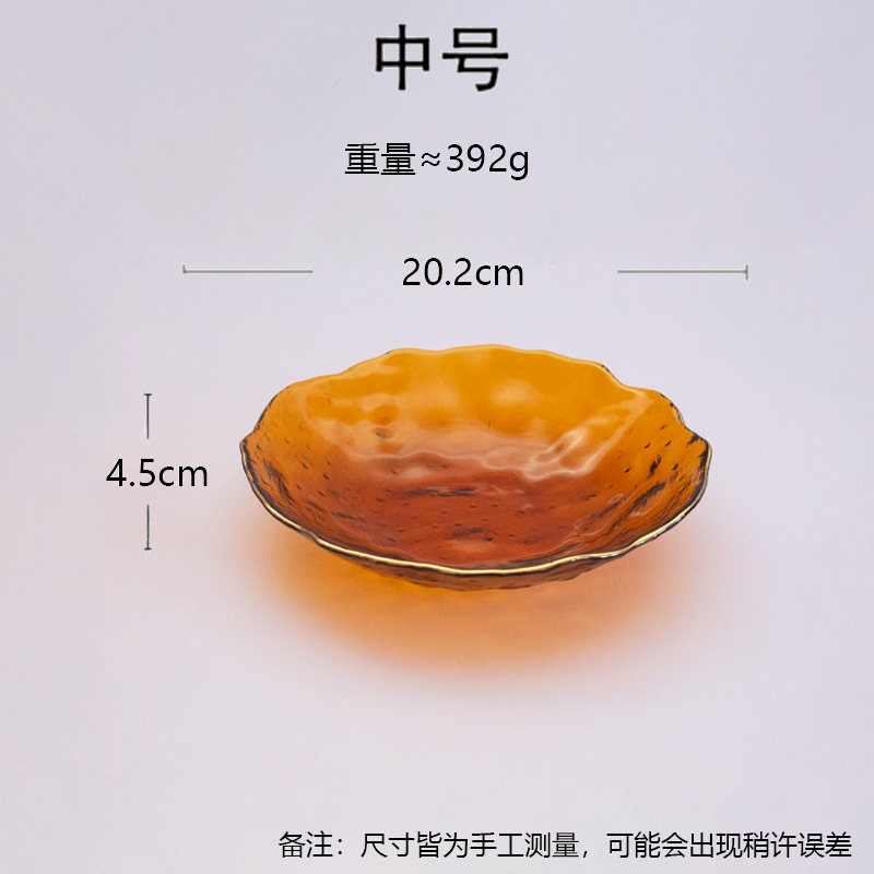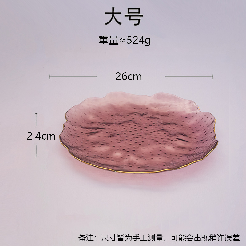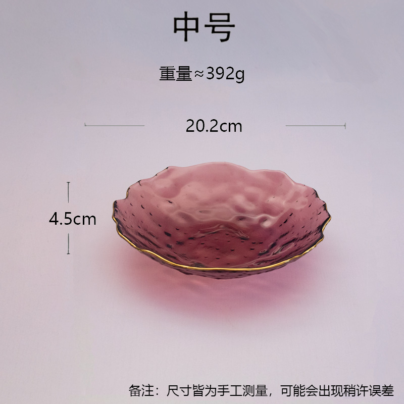 일본식 금테 레인포인트 유리 접시, 망치질 무늬 연잎 모양 식기, 내열성 가정용 거실 비정형 과일 접시 세트