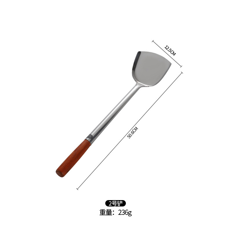 현대 Daifa 공장 두꺼운 나무 손잡이 스테인레스 스틸 볶음 스푼 삽 도매 큰 요리사 스푼 스테인레스 스틸 스푼 삽스토어 가기
