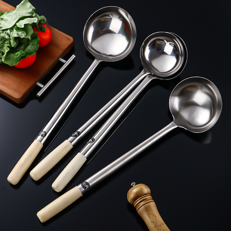 현대 Daifa 공장 두꺼운 나무 손잡이 스테인레스 스틸 볶음 스푼 삽 도매 큰 요리사 스푼 스테인레스 스틸 스푼 삽