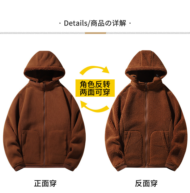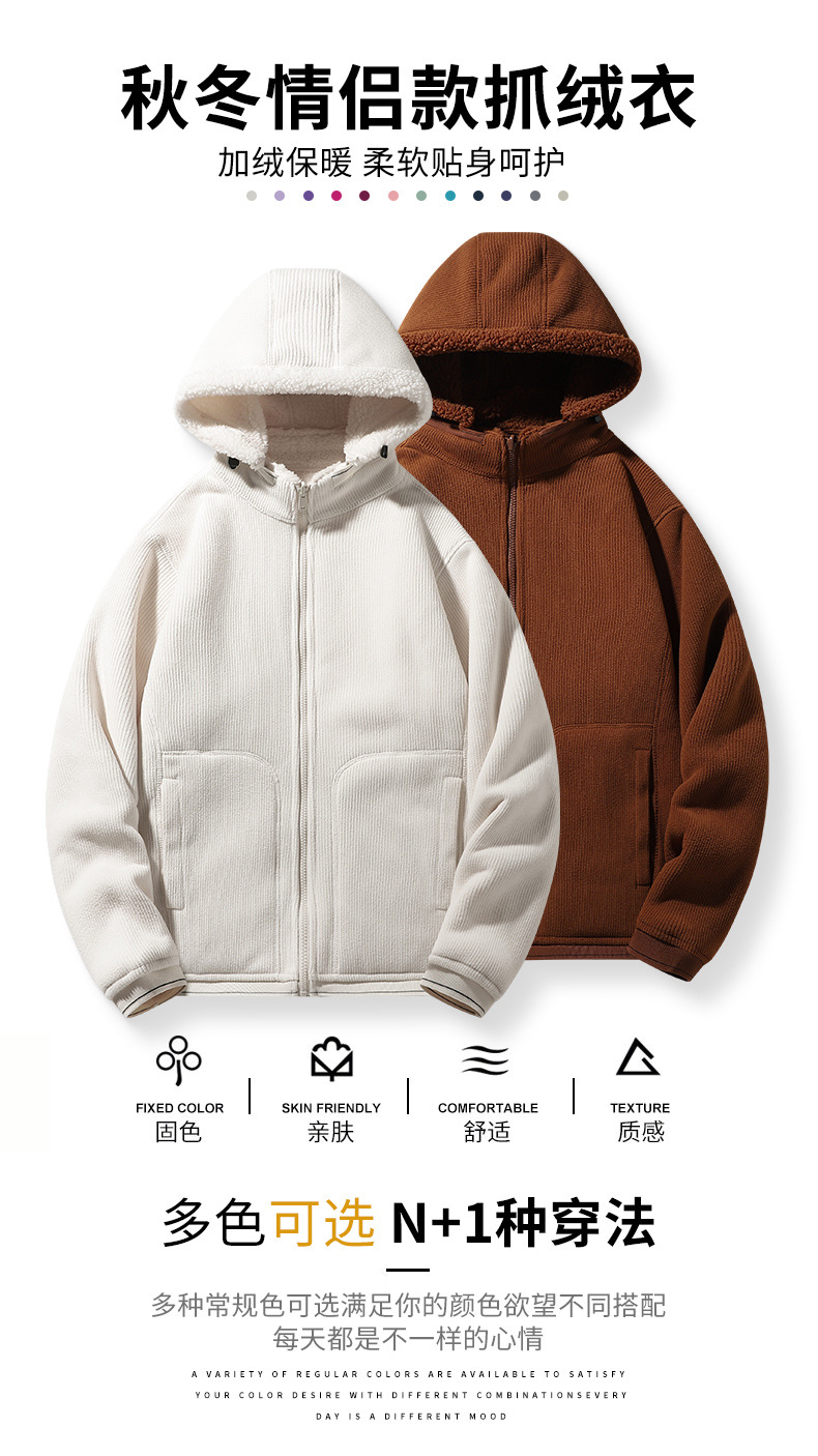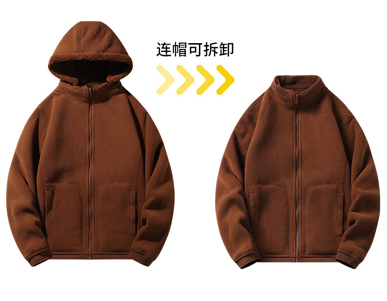 가을과 겨울 기모 두꺼운 한국식 탈착식 후드 후드 남성 포커 벨벳 따뜻한 캐주얼 양면웨어 커플 자켓스토어 가기