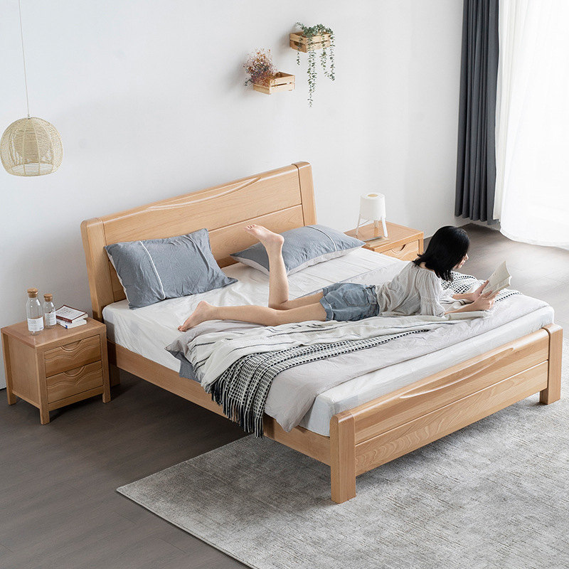 원목 톱질이 돋보이는 너도밤나무 원목 침대 1.8m 침실/신혼방 1.5/ 1.2m 모던 심플 더블 침대스토어 가기
