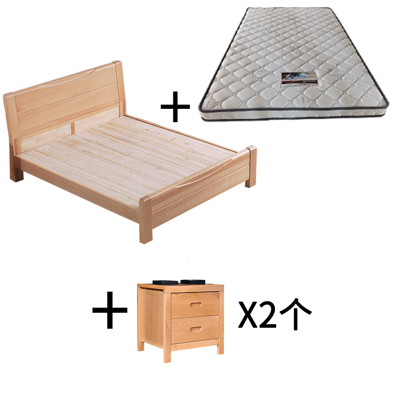 • 너도밤 나무 우드 퀸 침대 + 침대 옆 탁자 * 2 + 23cm 두께 매트리스