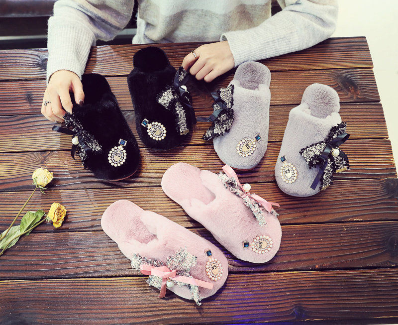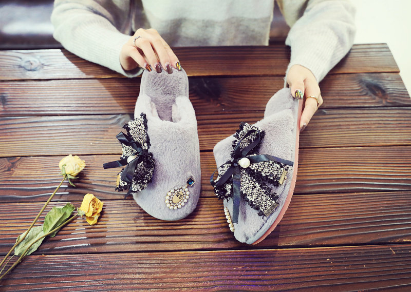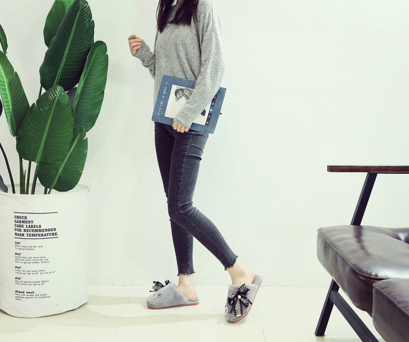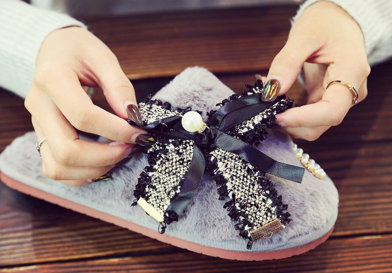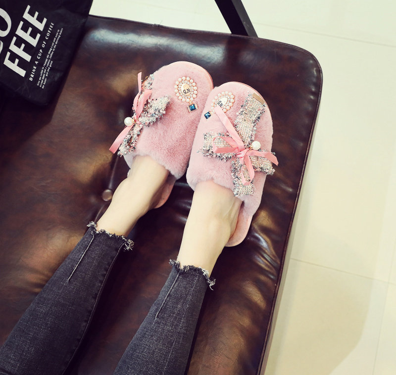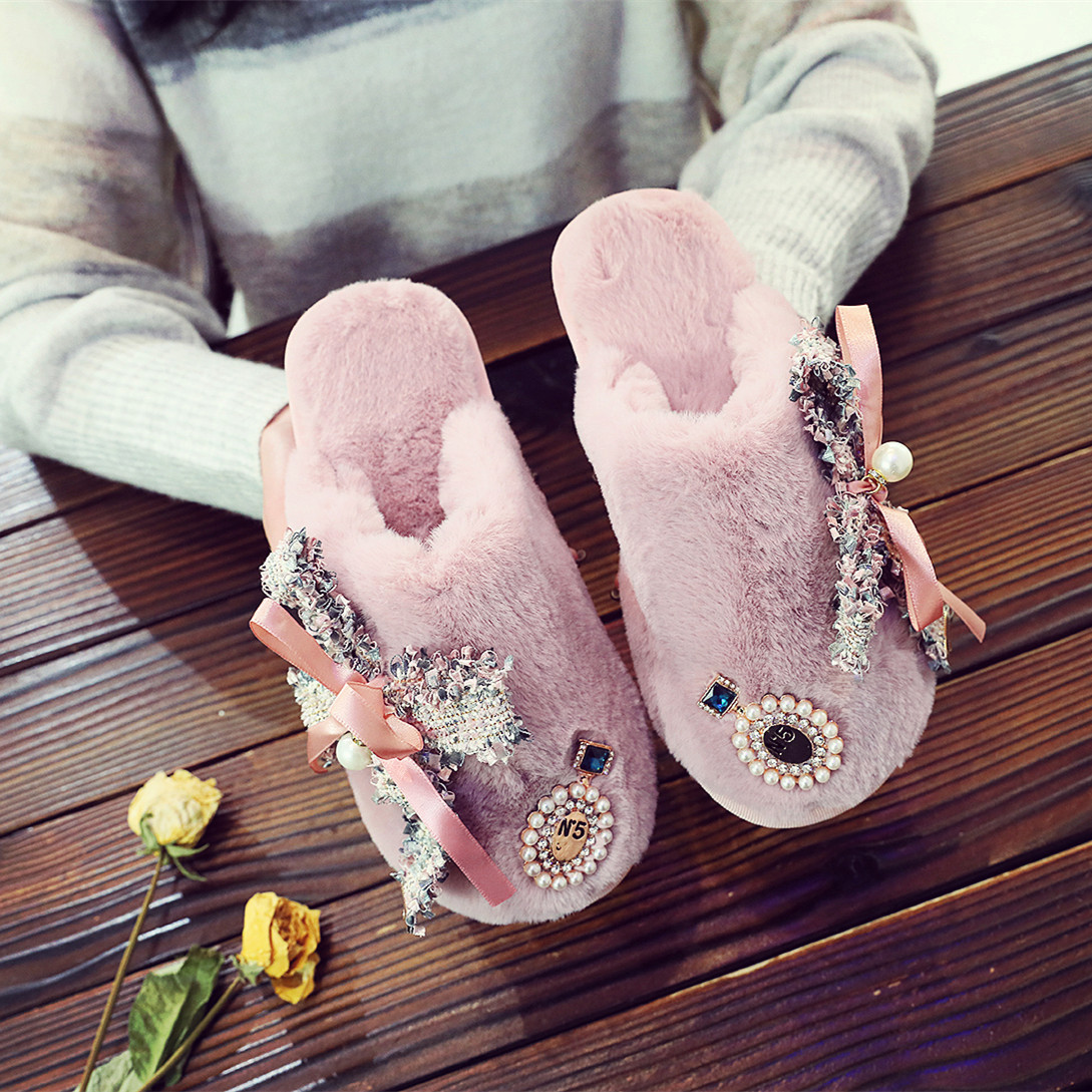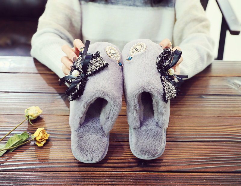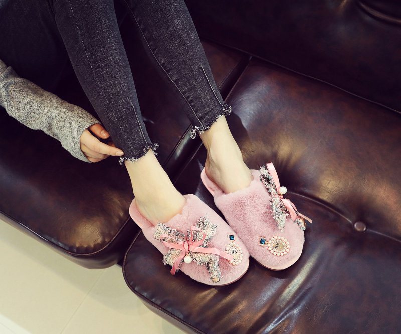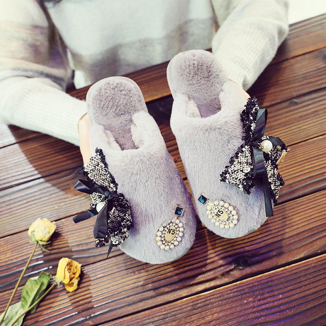 귀여운 향기로운 스타일 활 면 슬리퍼 여성의 가을과 겨울 홈 2020 새로운 실내 홈 문 신발스토어 가기