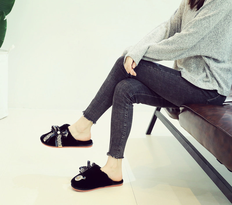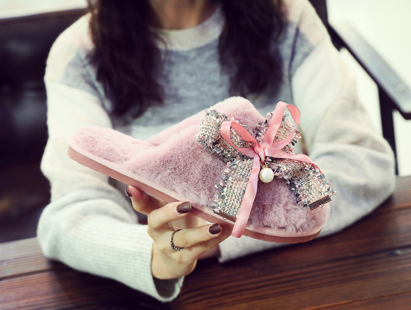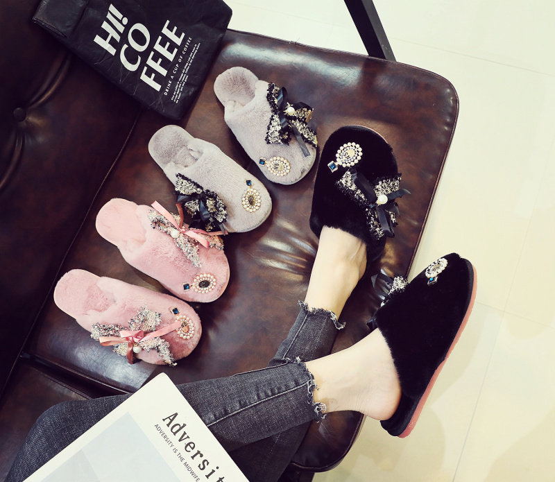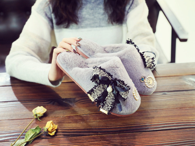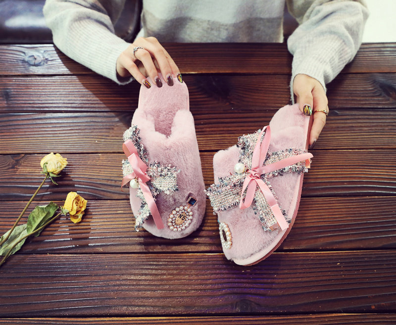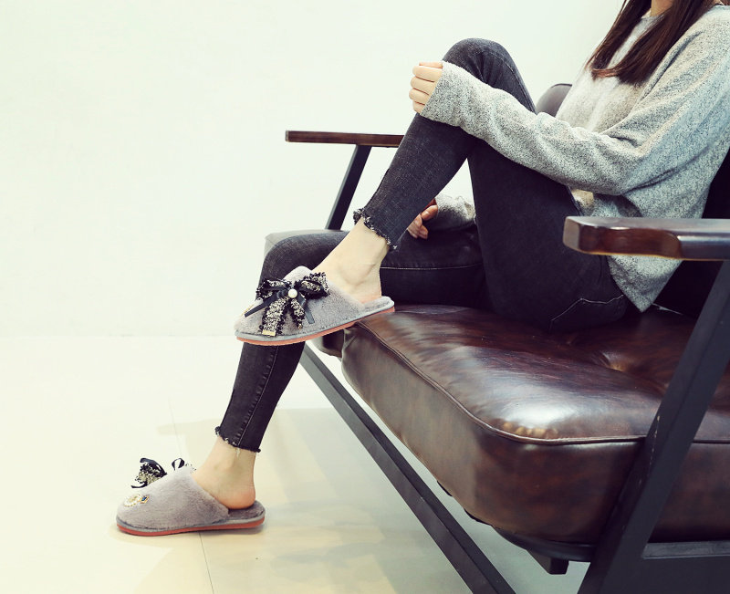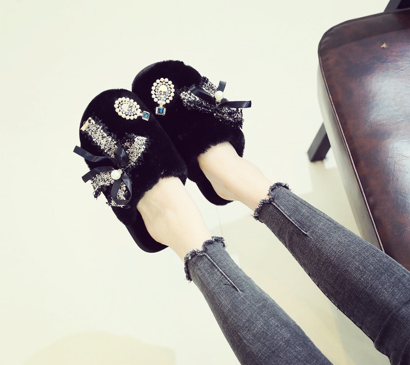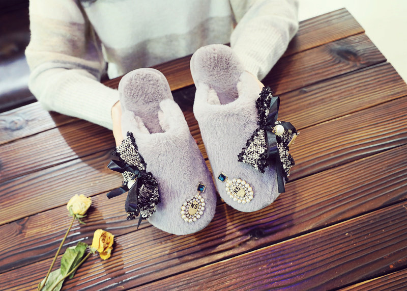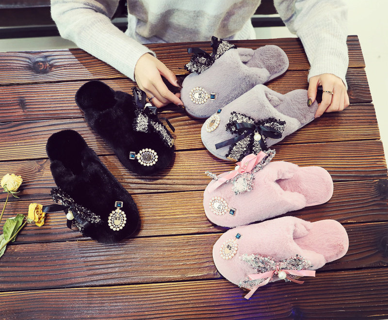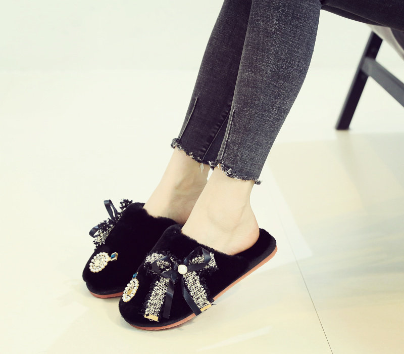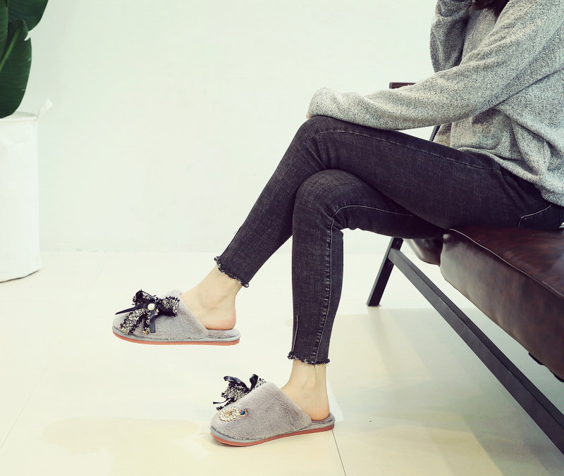 귀여운 향기로운 스타일 활 면 슬리퍼 여성의 가을과 겨울 홈 2020 새로운 실내 홈 문 신발스토어 가기