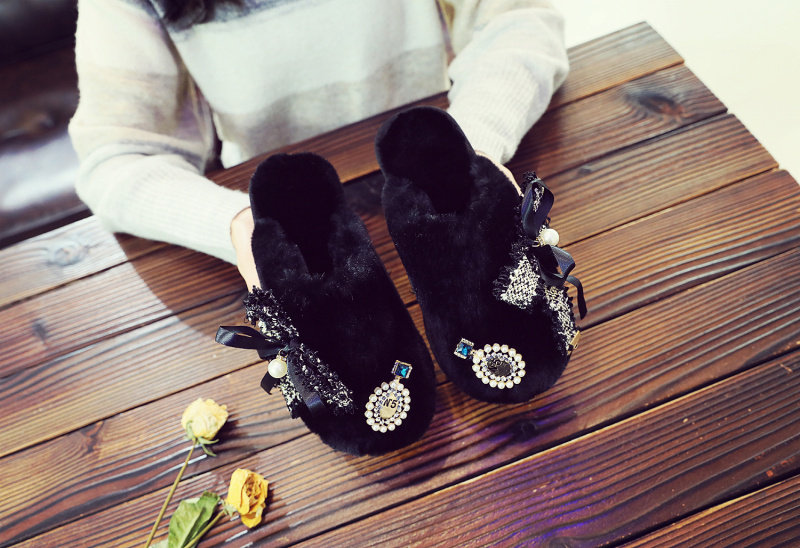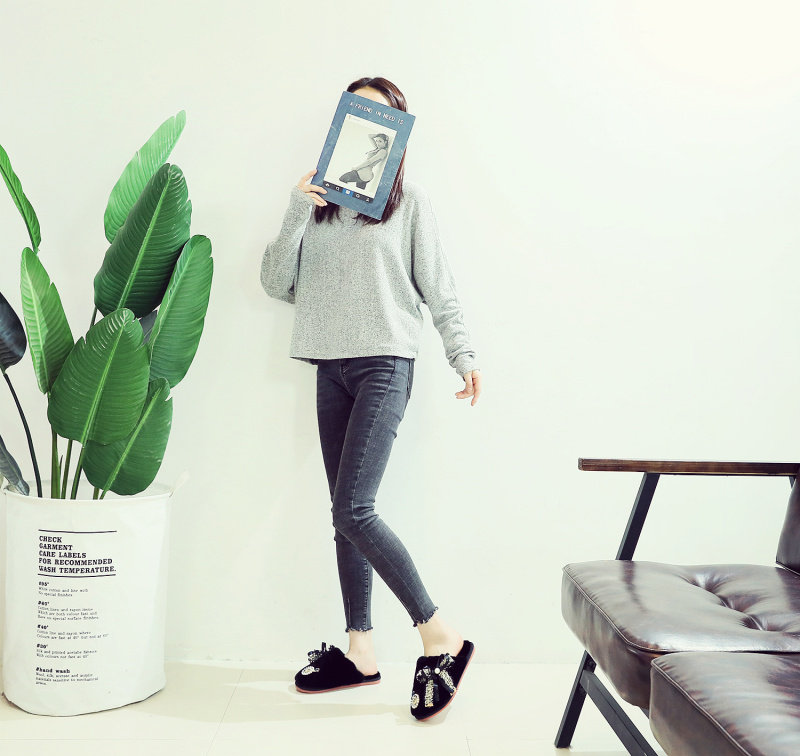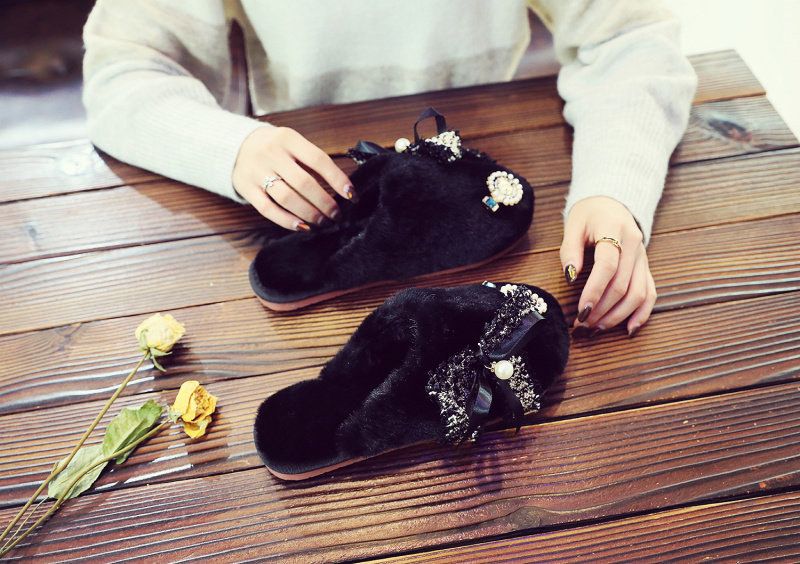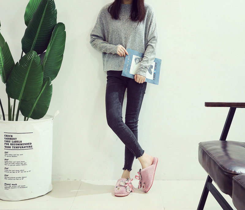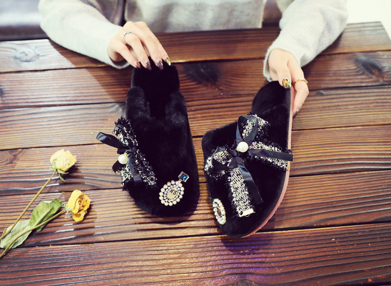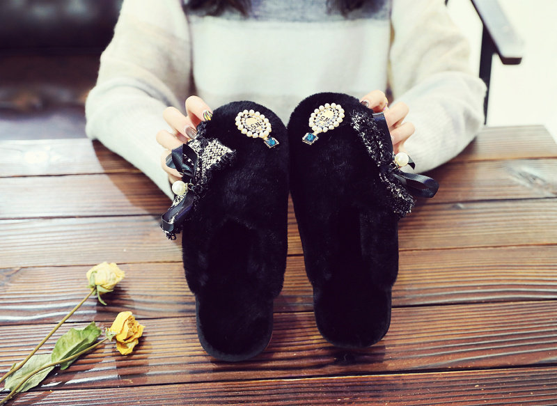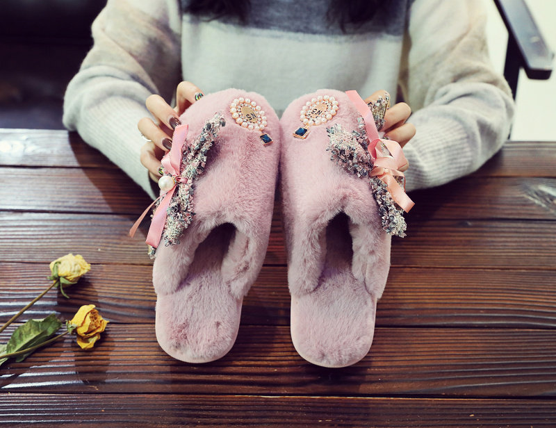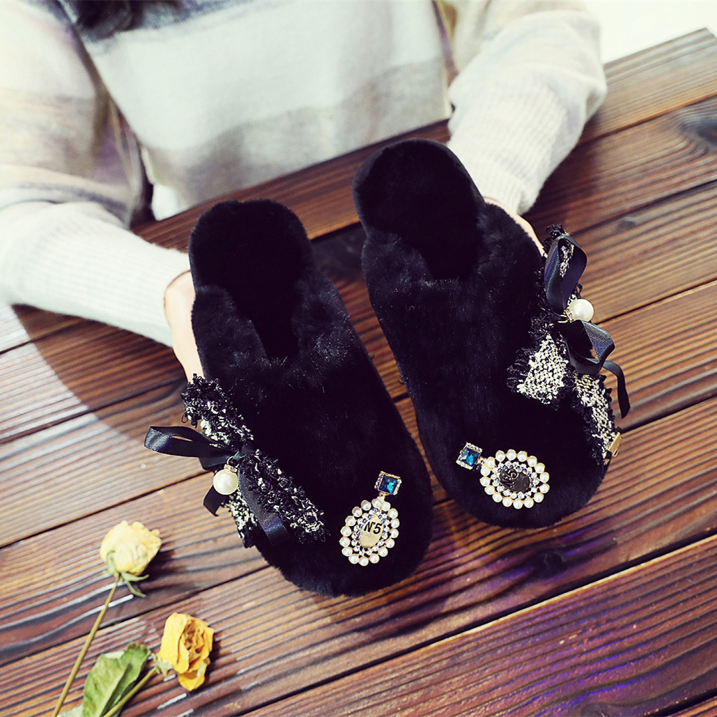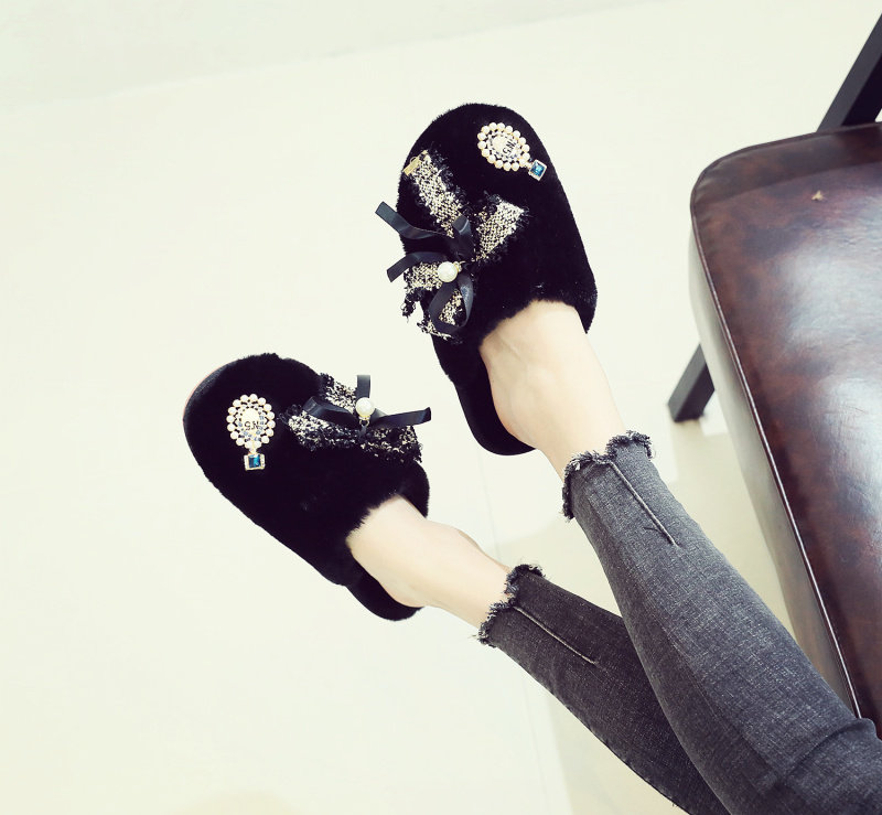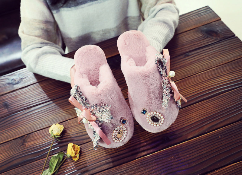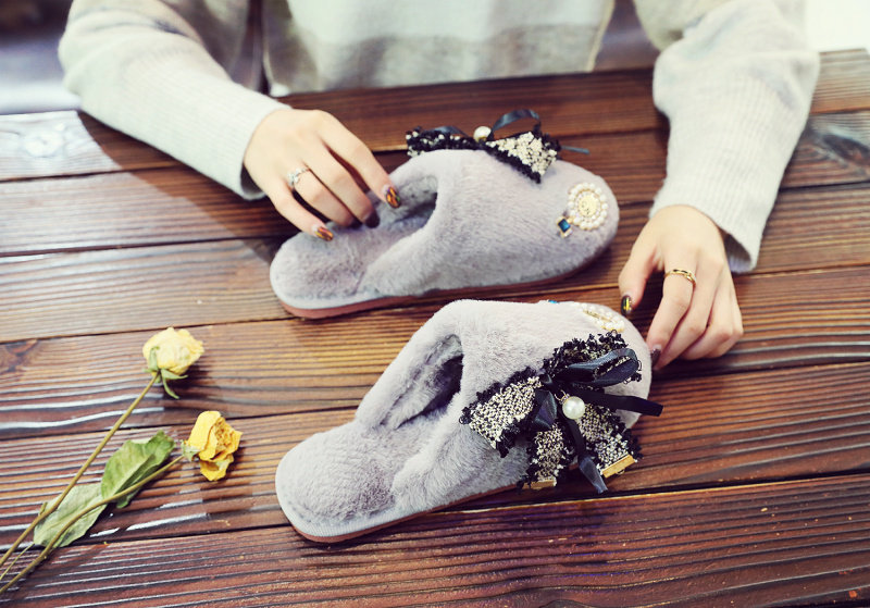귀여운 향기로운 스타일 활 면 슬리퍼 여성의 가을과 겨울 홈 2020 새로운 실내 홈 문 신발스토어 가기