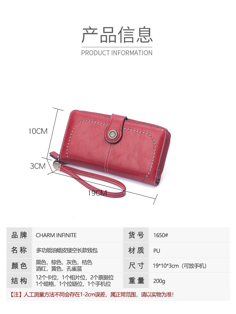 크로스 보더 핫 뉴 숙녀 지갑 레트로 오일 왁스 가죽 긴 중공 지갑 다기능 대용량 휴대 전화 가방