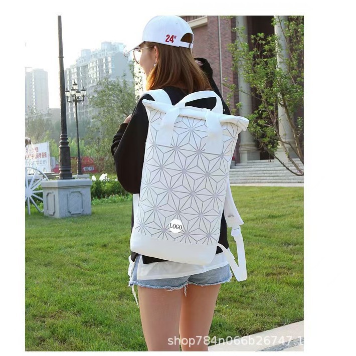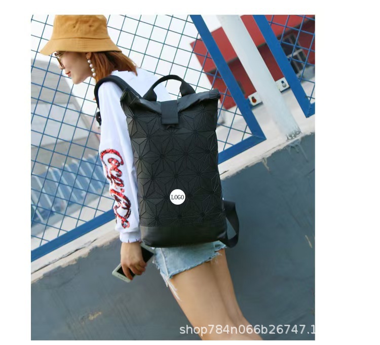 미야케 새로운 기하학 다이아몬드 가방 접이식 배낭 빛나는 레이저 배낭 등산 가방 학생 배낭스토어 가기