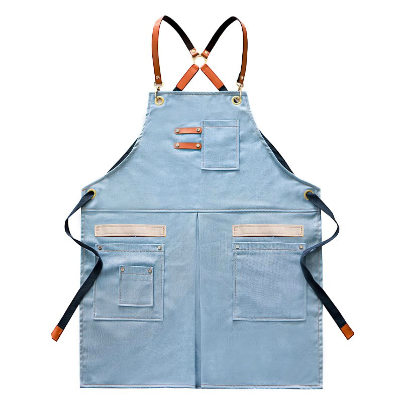 공장 앞치마 데님 헤어 스타일리스트 밀크 티 케이크 가게 바리 스타 남성과 여성의 꽃집 작업 옷 헤어 인쇄 로고