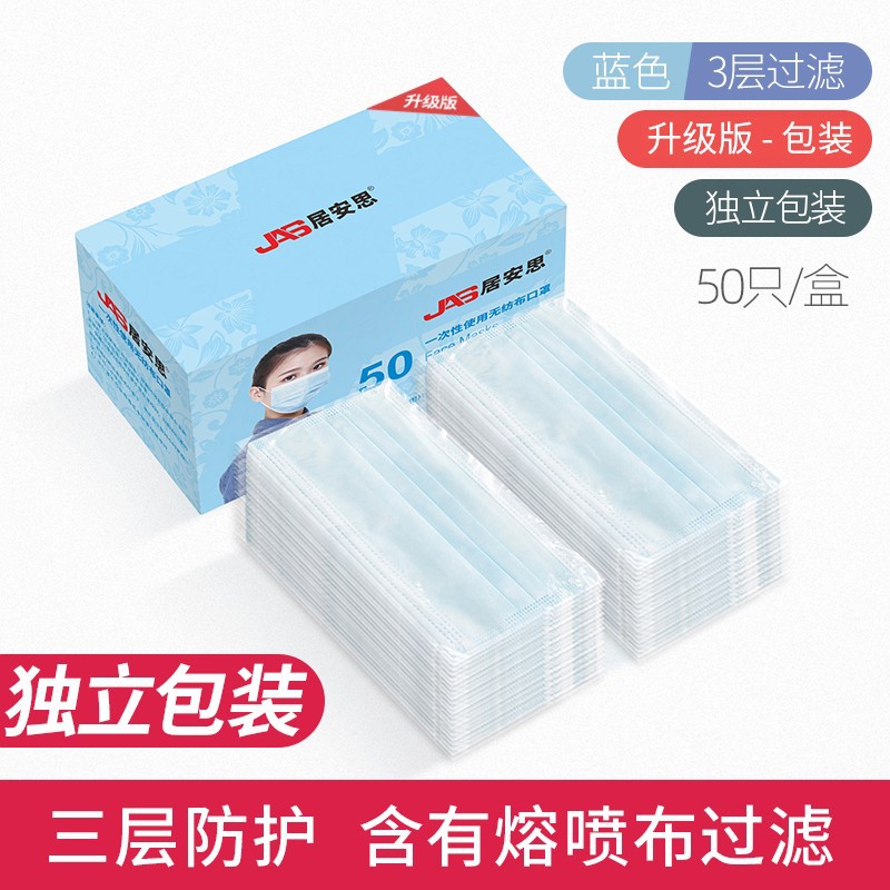 • 블루 - 개별 포장된 3중 보호 마스크 [50개들이 1박스]
