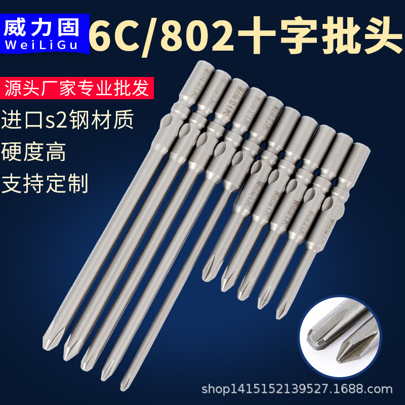 Weigu 802 전기 배치 6C 필립스 드라이버 마그네틱 배치 헤드 라운드 핸들 6mm 스크루 드라이버 헤드 60-100 PH0/1/2
