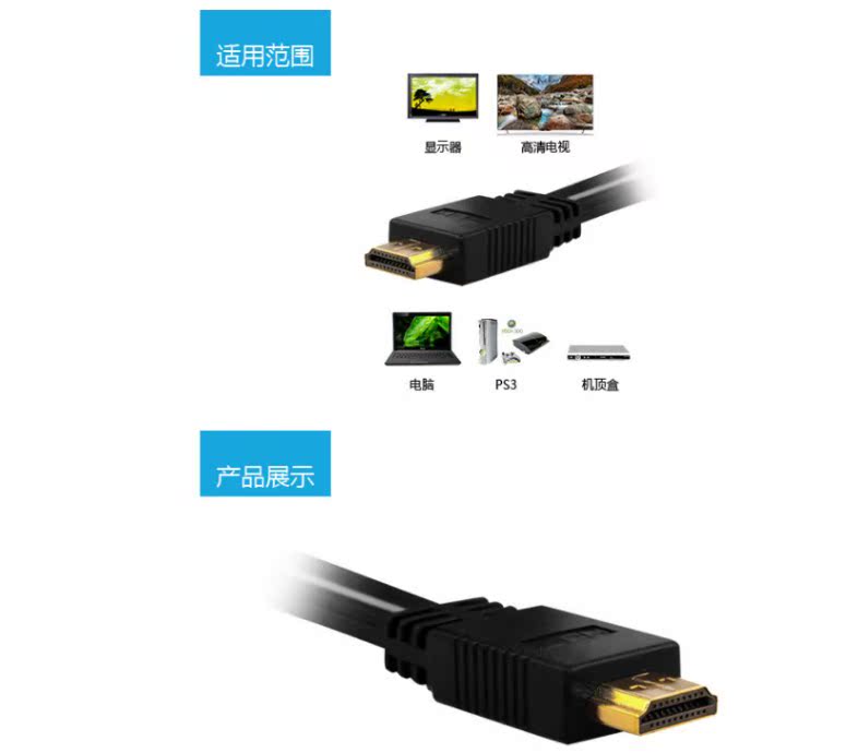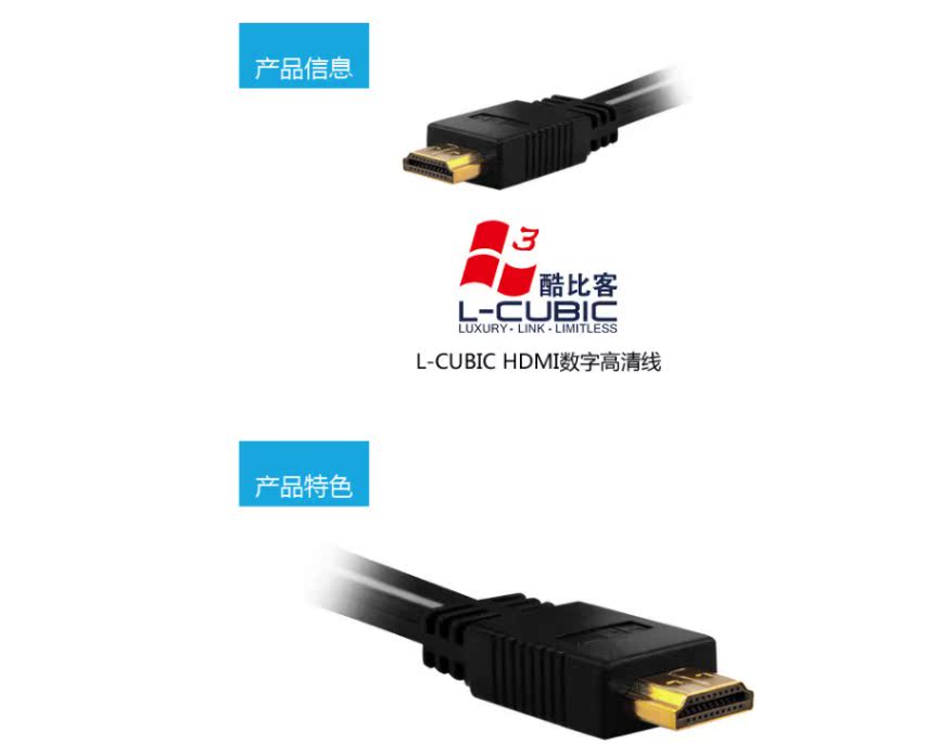 L-CUBIC 扁平HDMI线 高清线 hdmi电脑电视连接线 2米 黑色 2米