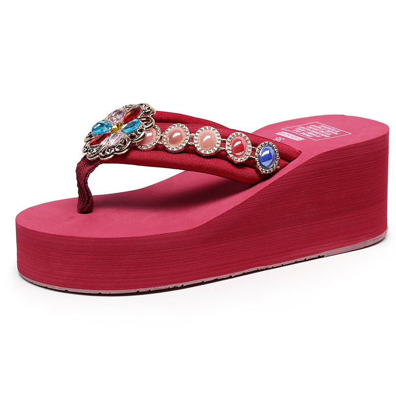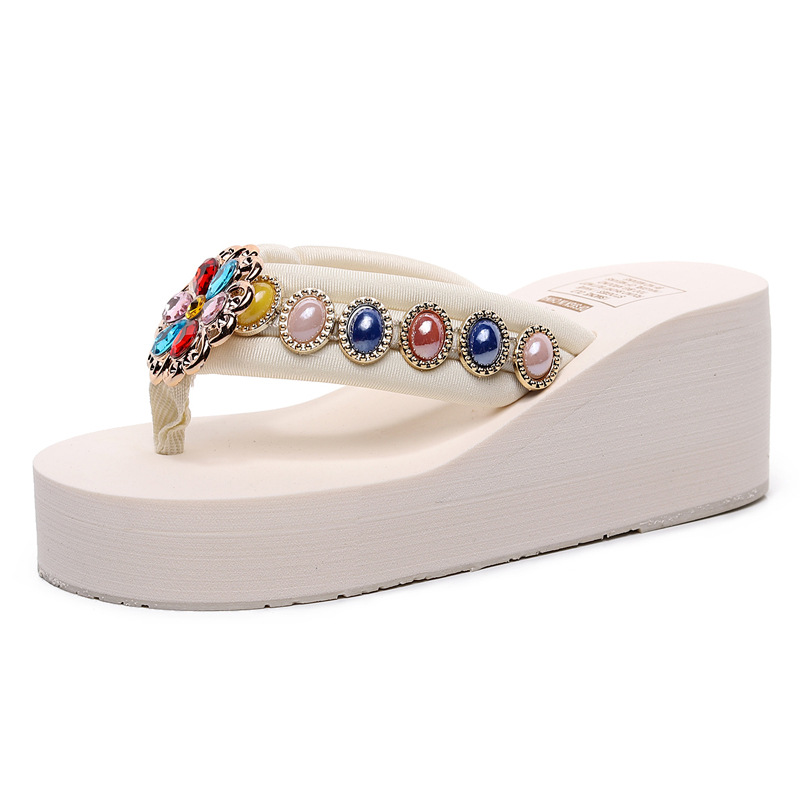 크로스 보더 여름 소녀 편안한 부드러운 밑창 하이힐 샌들 비치 슈즈 패션 여성용 샌들과 슬리퍼는 같은 날 배송스토어 가기