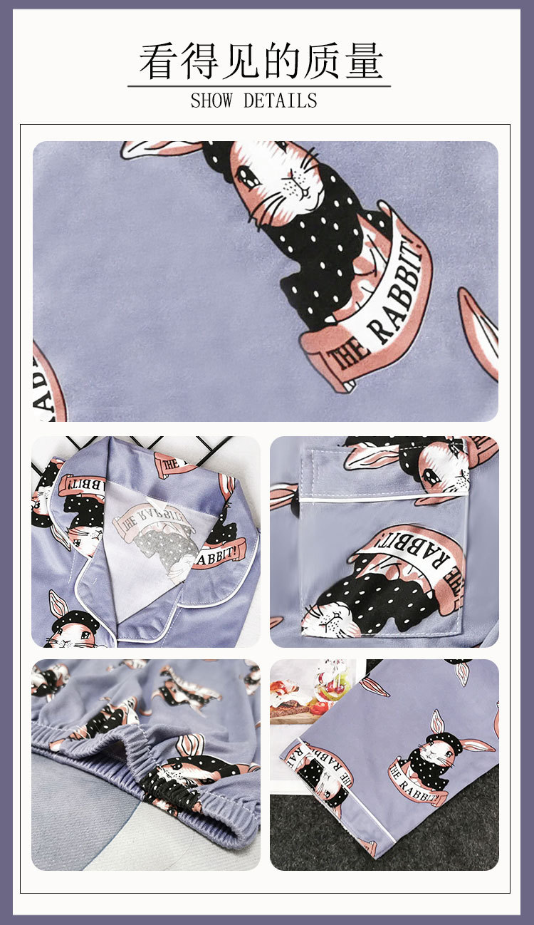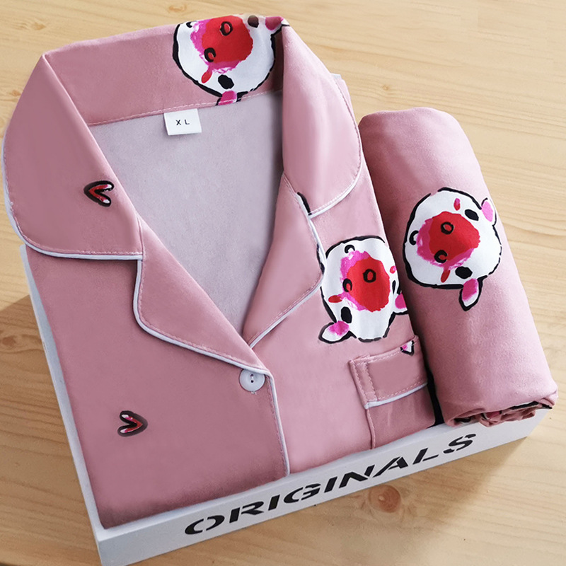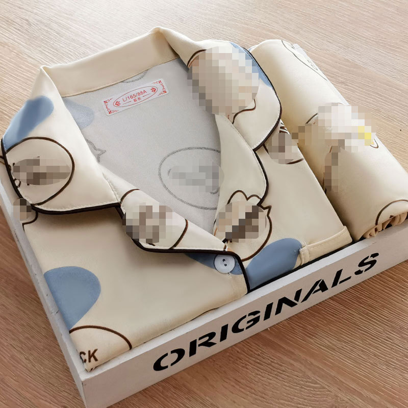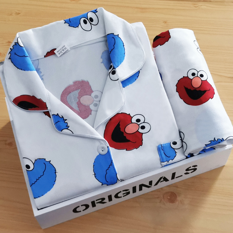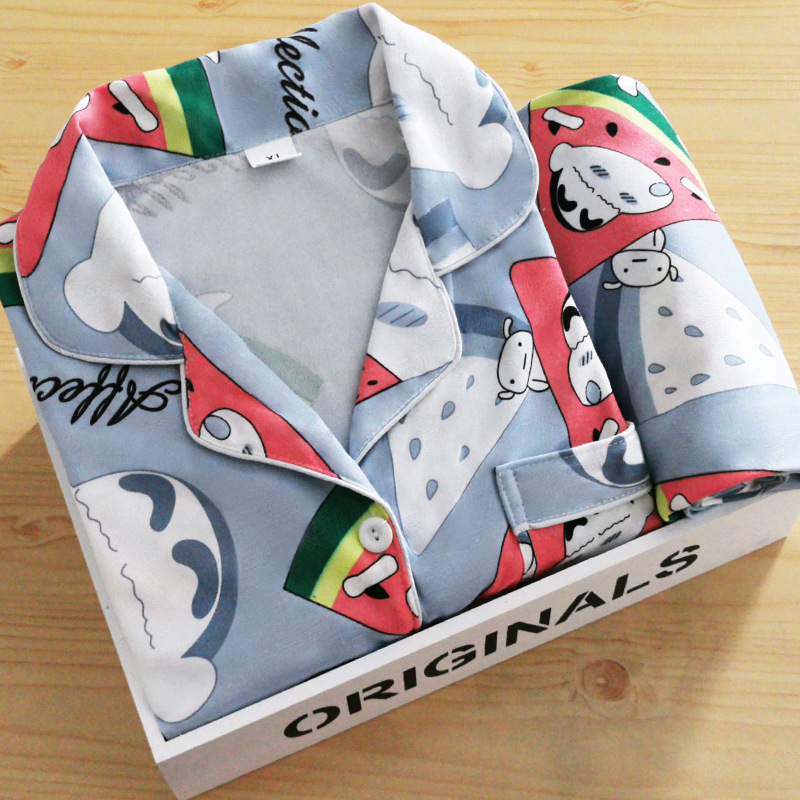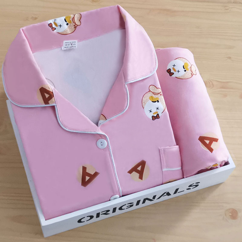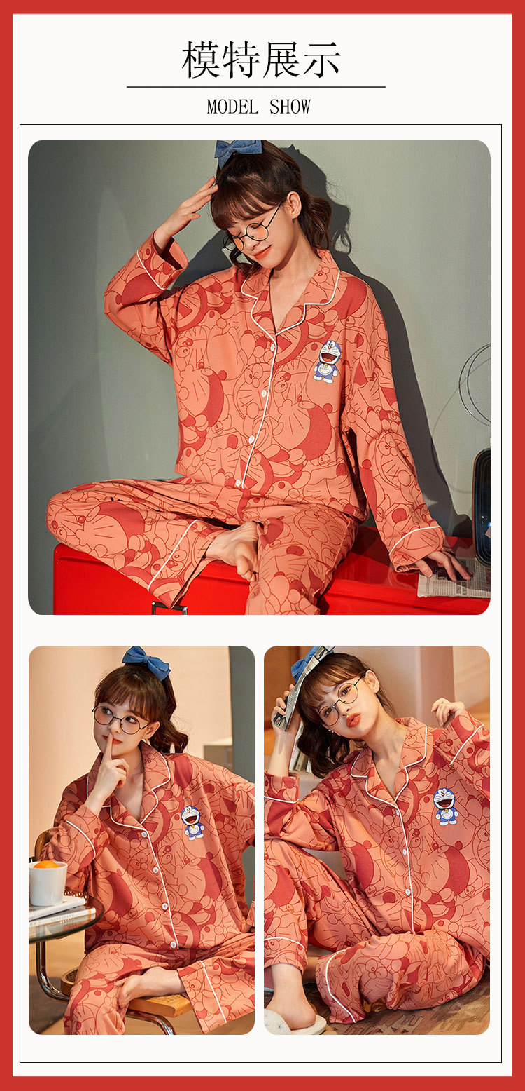 Ins Microbusiness 얇은 옷깃 파자마 여성의 봄과 가을 카디건 긴 소매 바지 만화 대외 무역 여성 홈 의류 세트