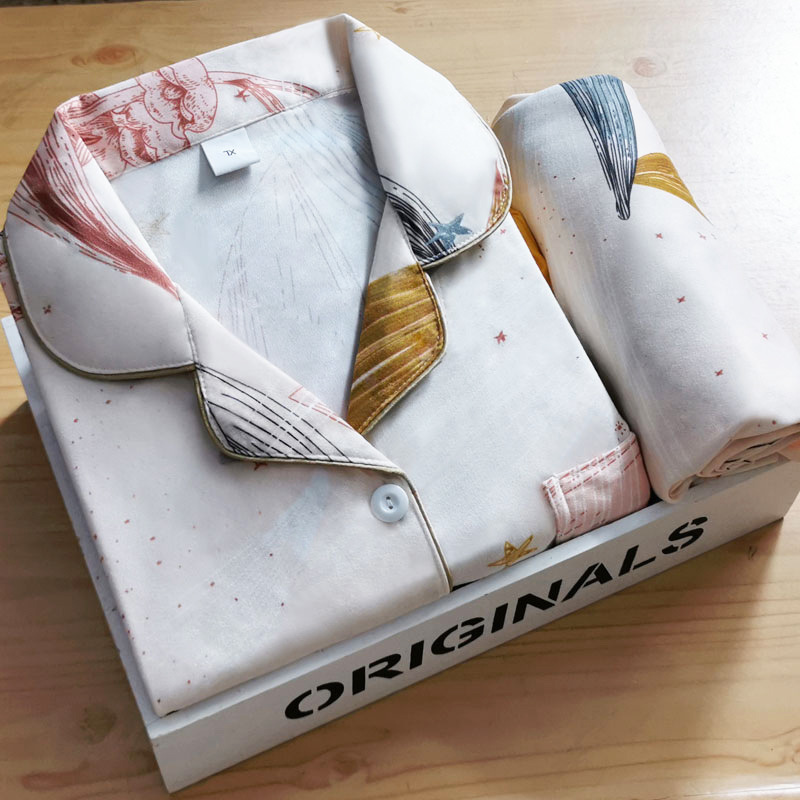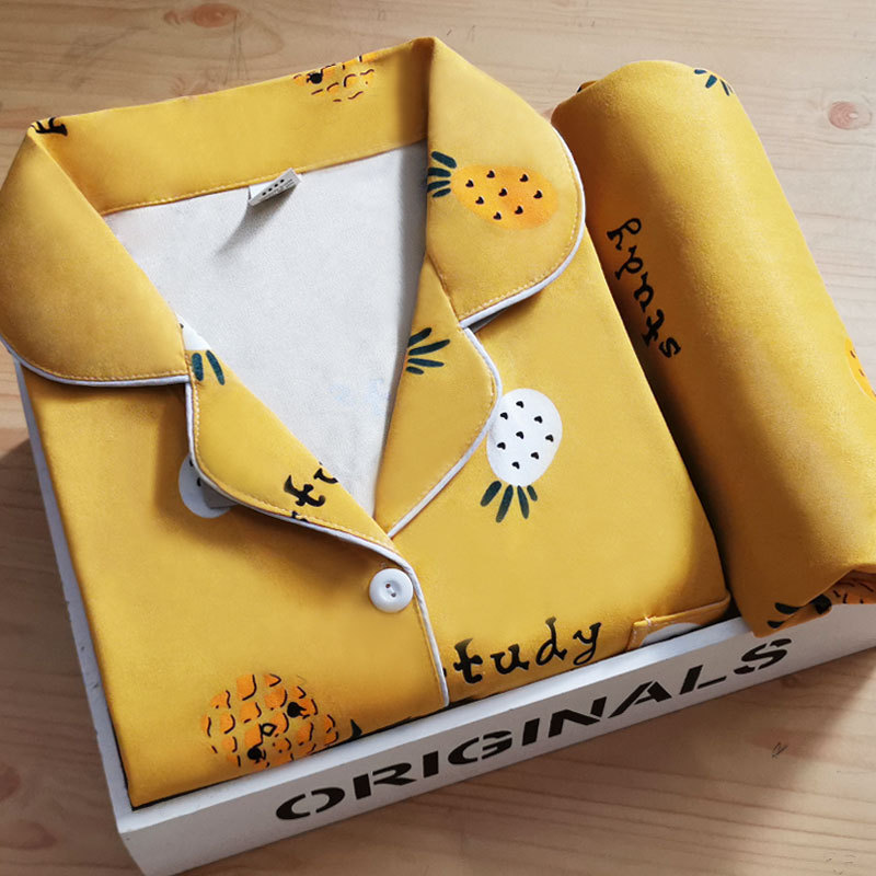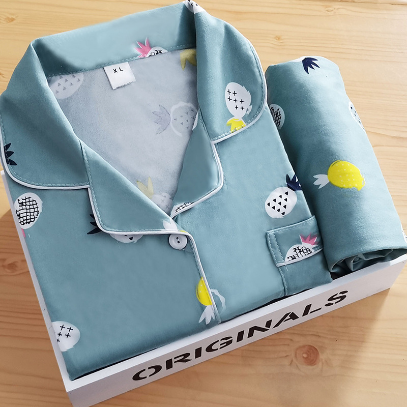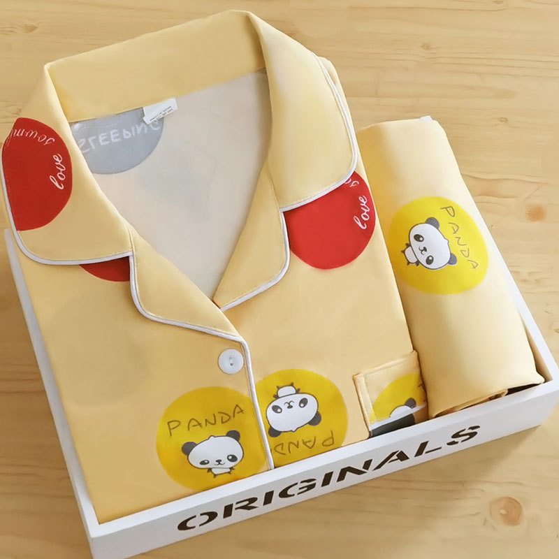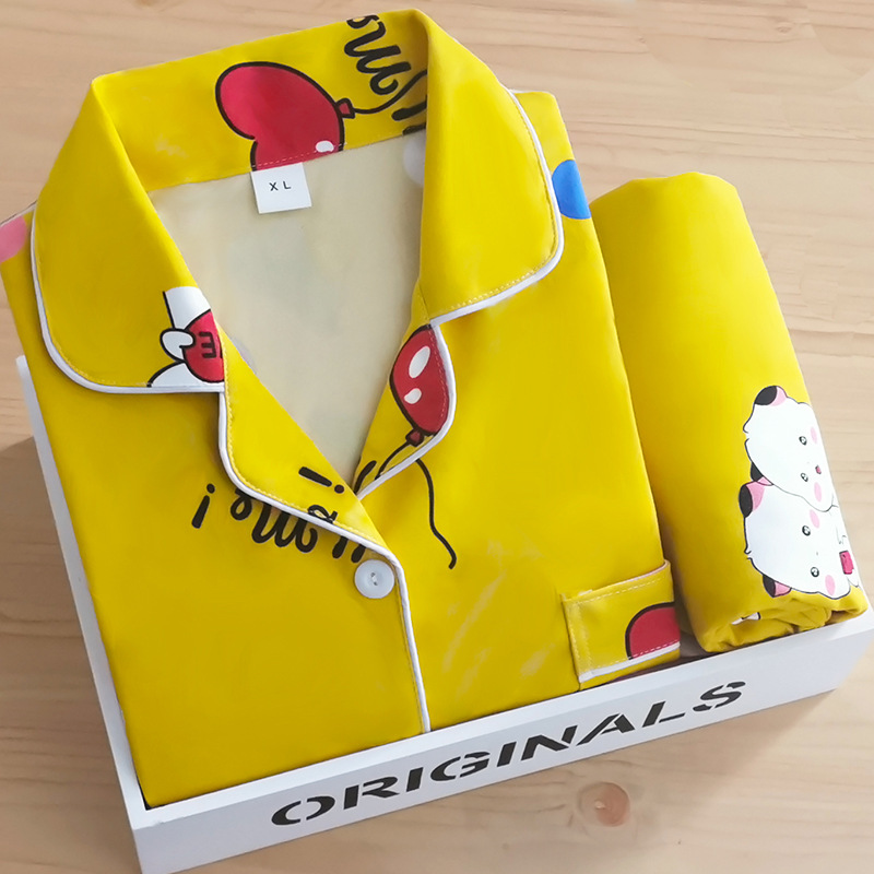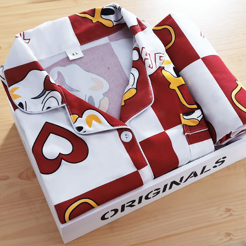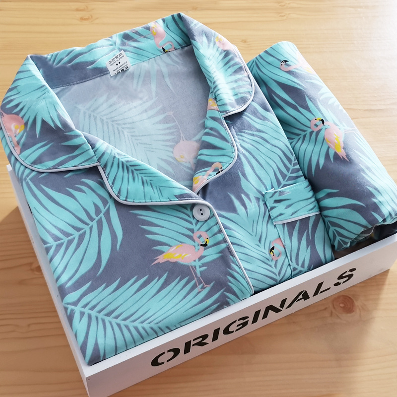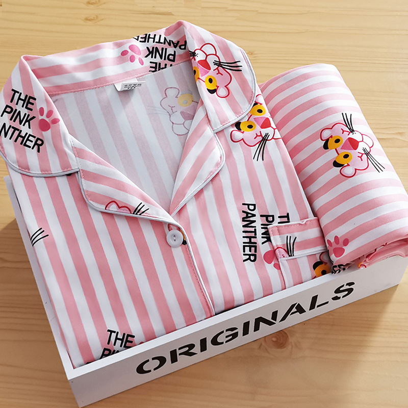 Ins Microbusiness 얇은 옷깃 파자마 여성의 봄과 가을 카디건 긴 소매 바지 만화 대외 무역 여성 홈 의류 세트