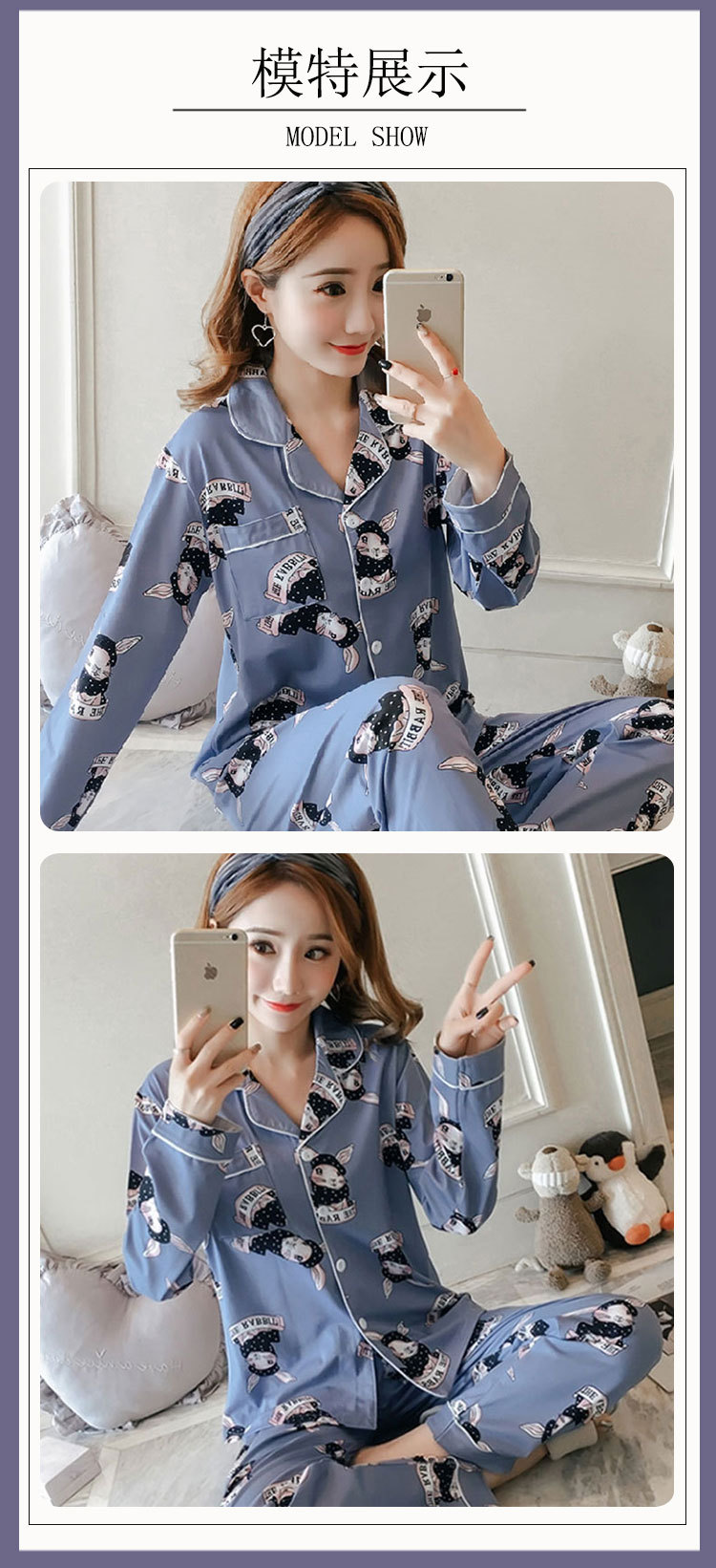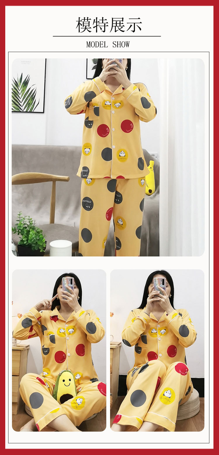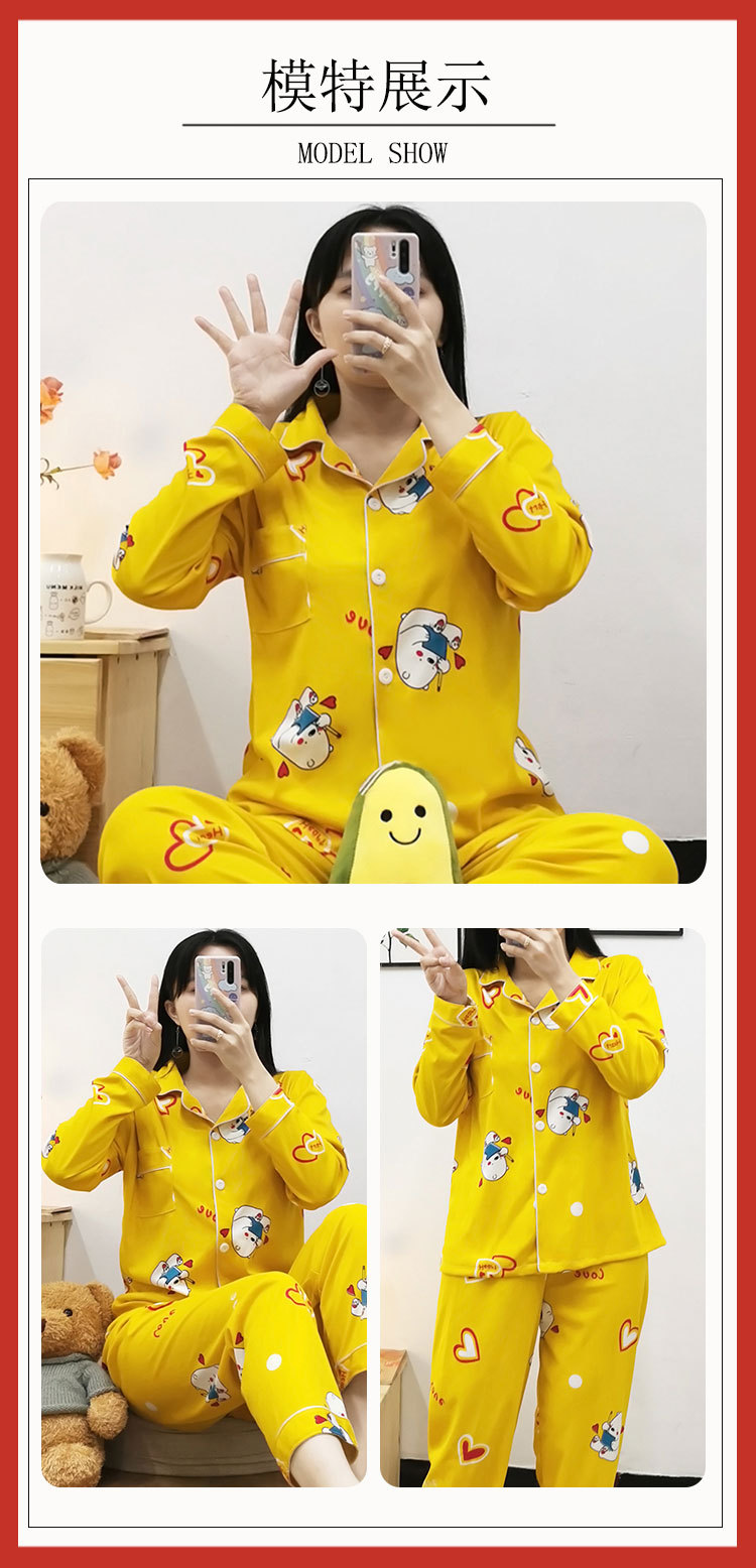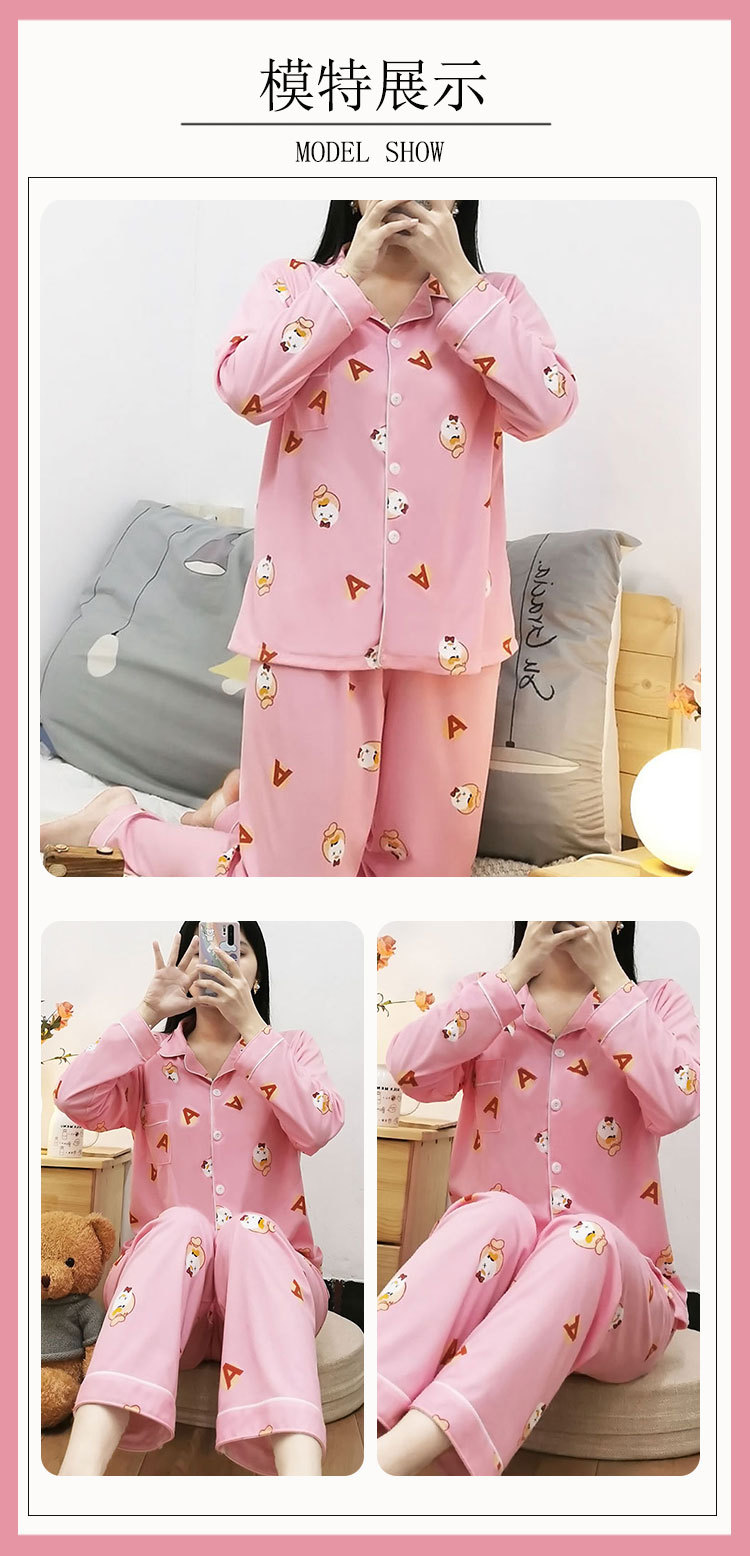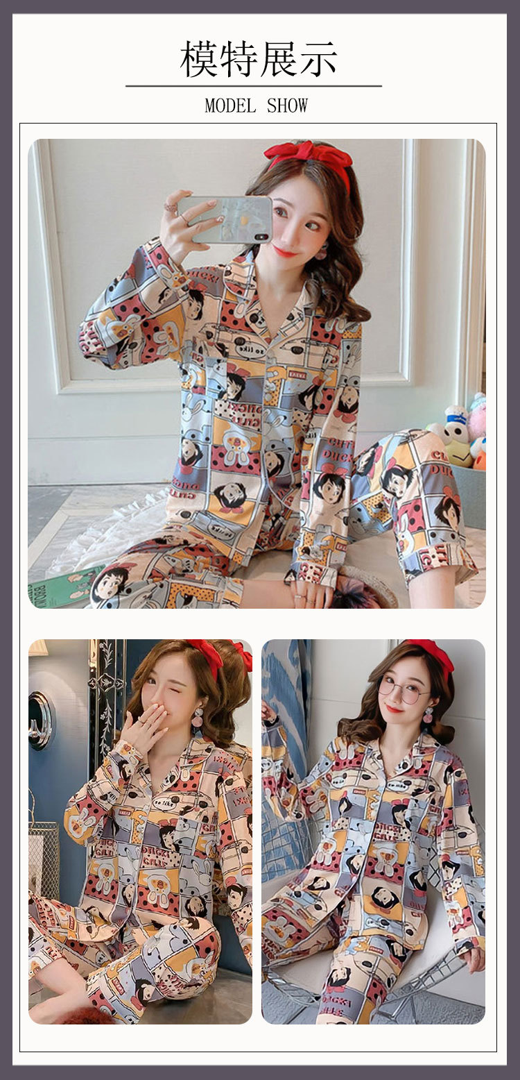 Ins Microbusiness 얇은 옷깃 파자마 여성의 봄과 가을 카디건 긴 소매 바지 만화 대외 무역 여성 홈 의류 세트스토어 가기