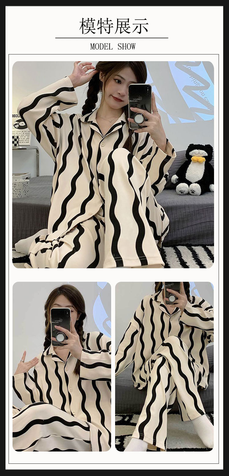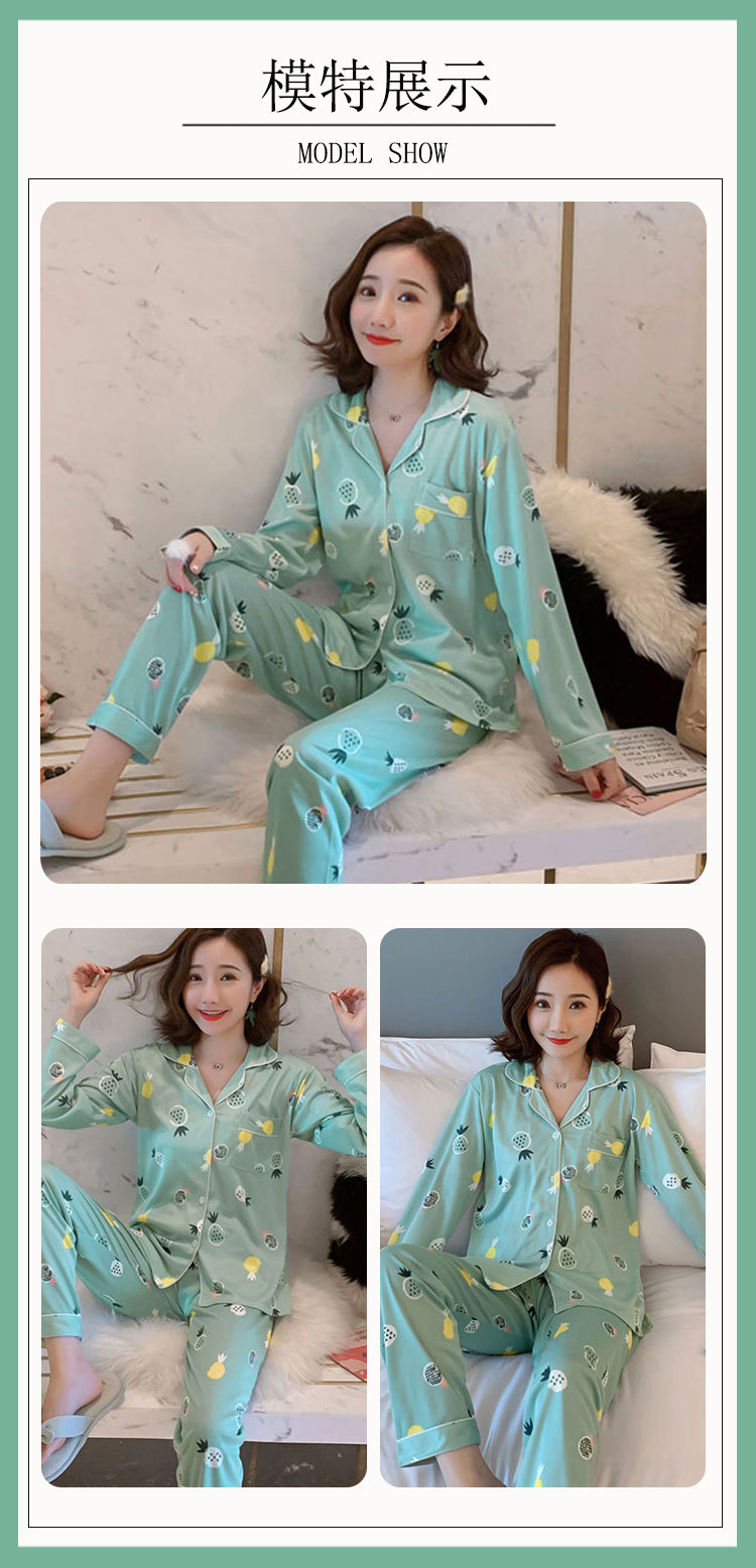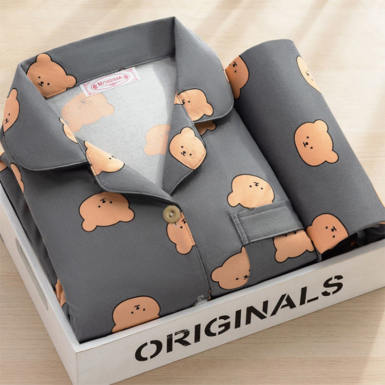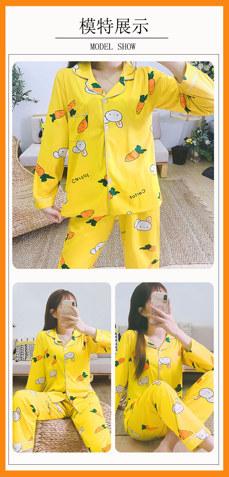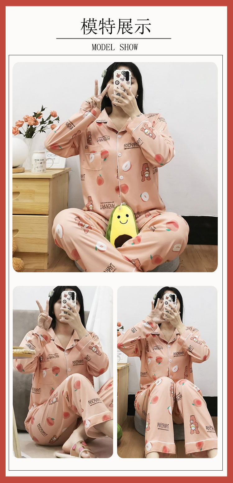Ins Microbusiness 얇은 옷깃 파자마 여성의 봄과 가을 카디건 긴 소매 바지 만화 대외 무역 여성 홈 의류 세트스토어 가기