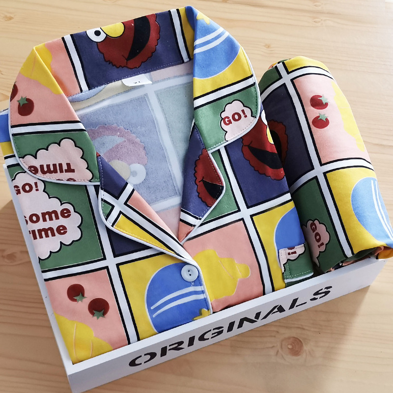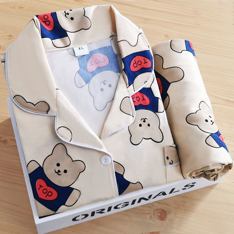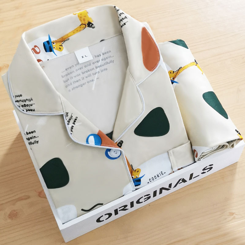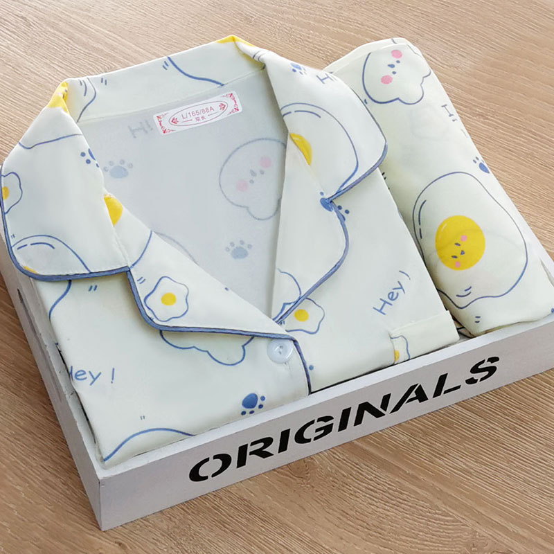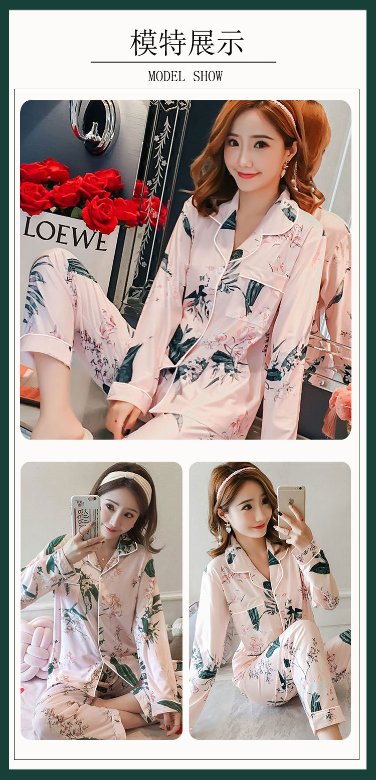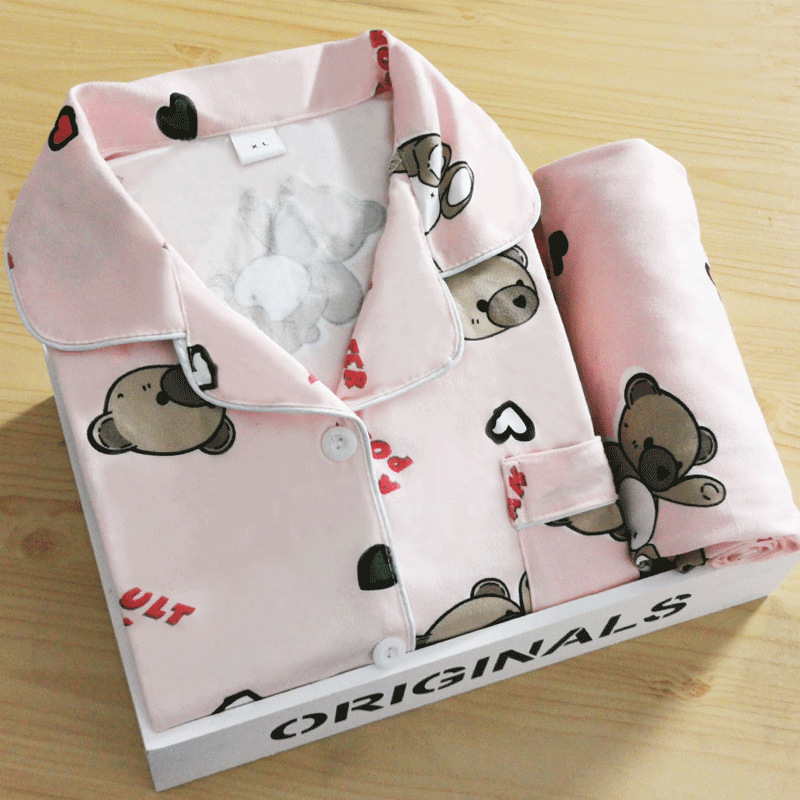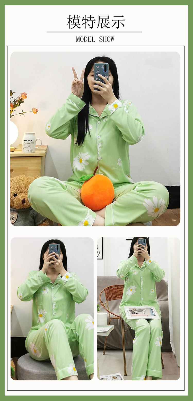 Ins Microbusiness 얇은 옷깃 파자마 여성의 봄과 가을 카디건 긴 소매 바지 만화 대외 무역 여성 홈 의류 세트스토어 가기