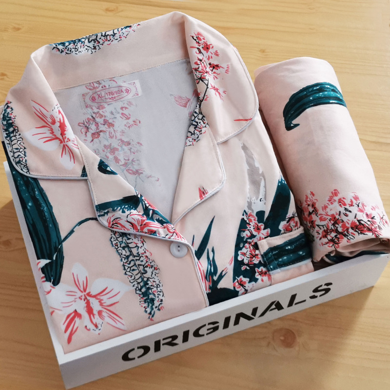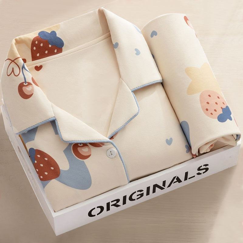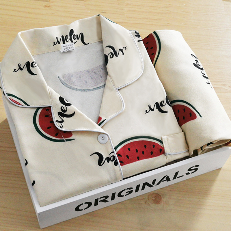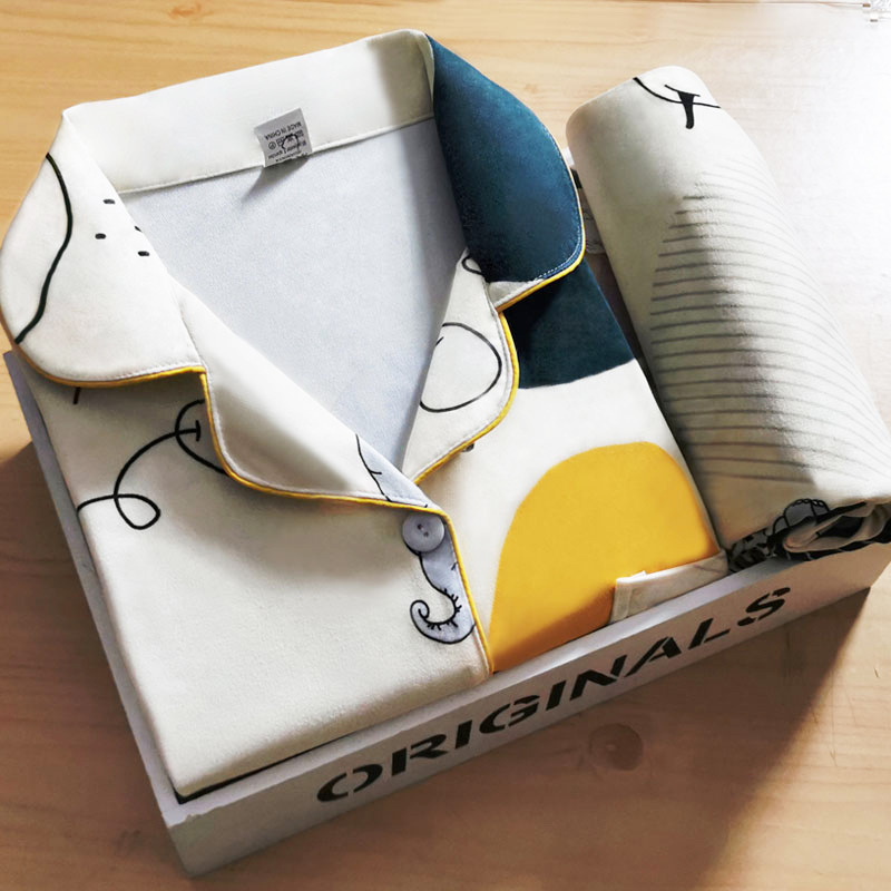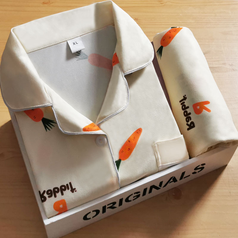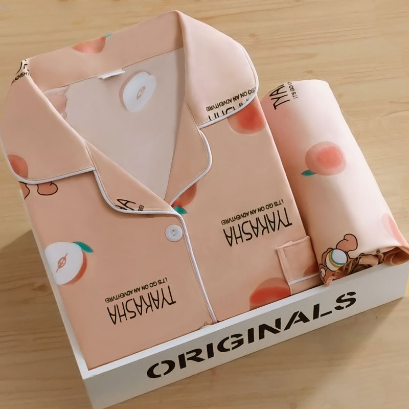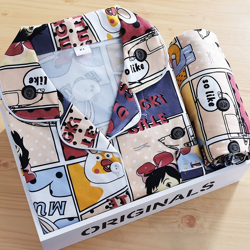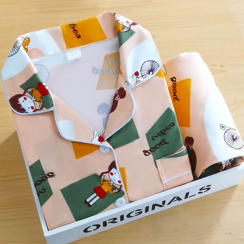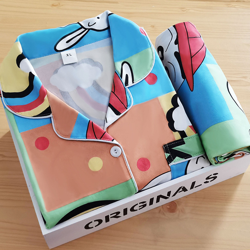 Ins Microbusiness 얇은 옷깃 파자마 여성의 봄과 가을 카디건 긴 소매 바지 만화 대외 무역 여성 홈 의류 세트스토어 가기