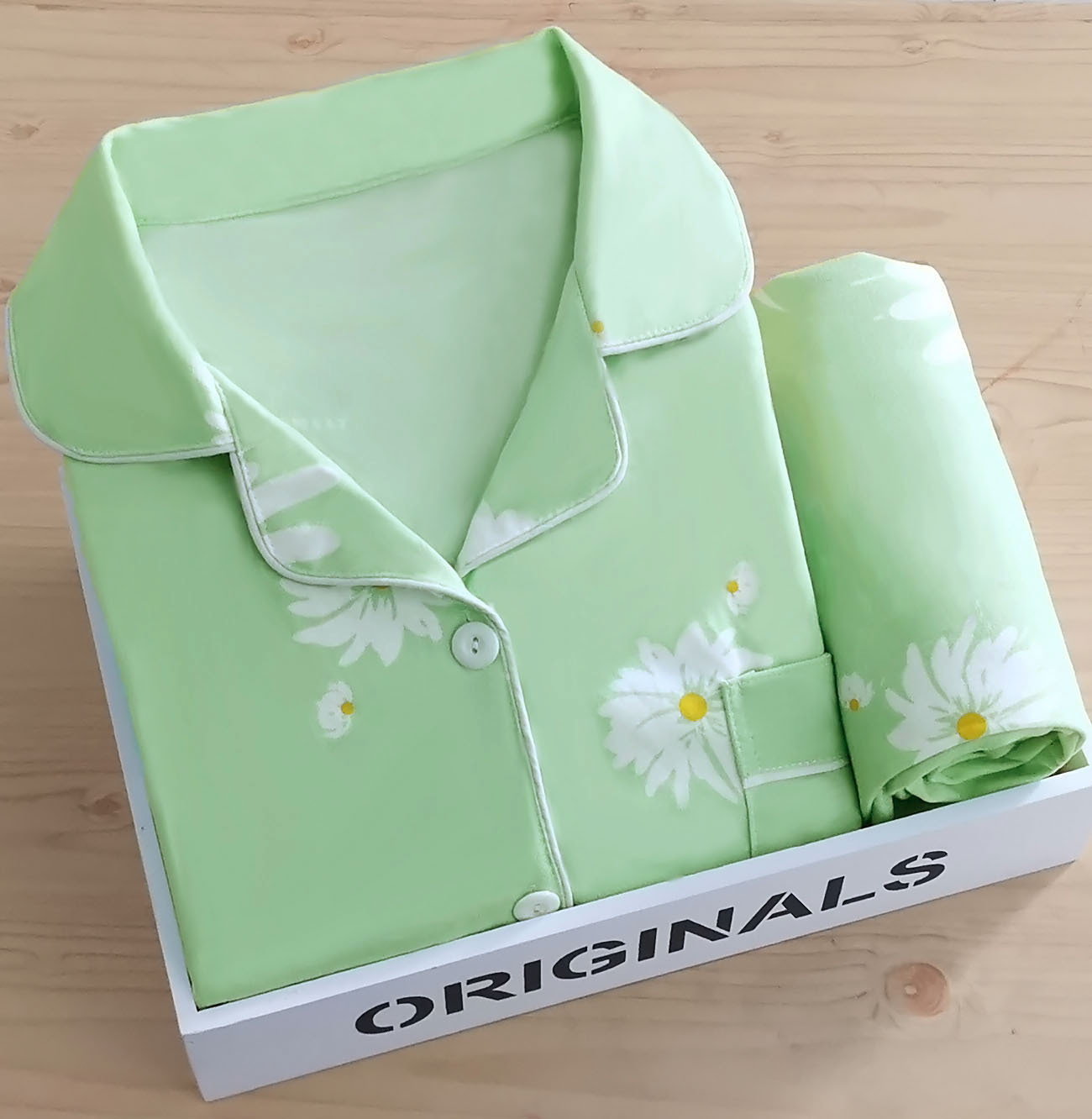 • S 그린 리프 플라밍고 가디건 롱 세트