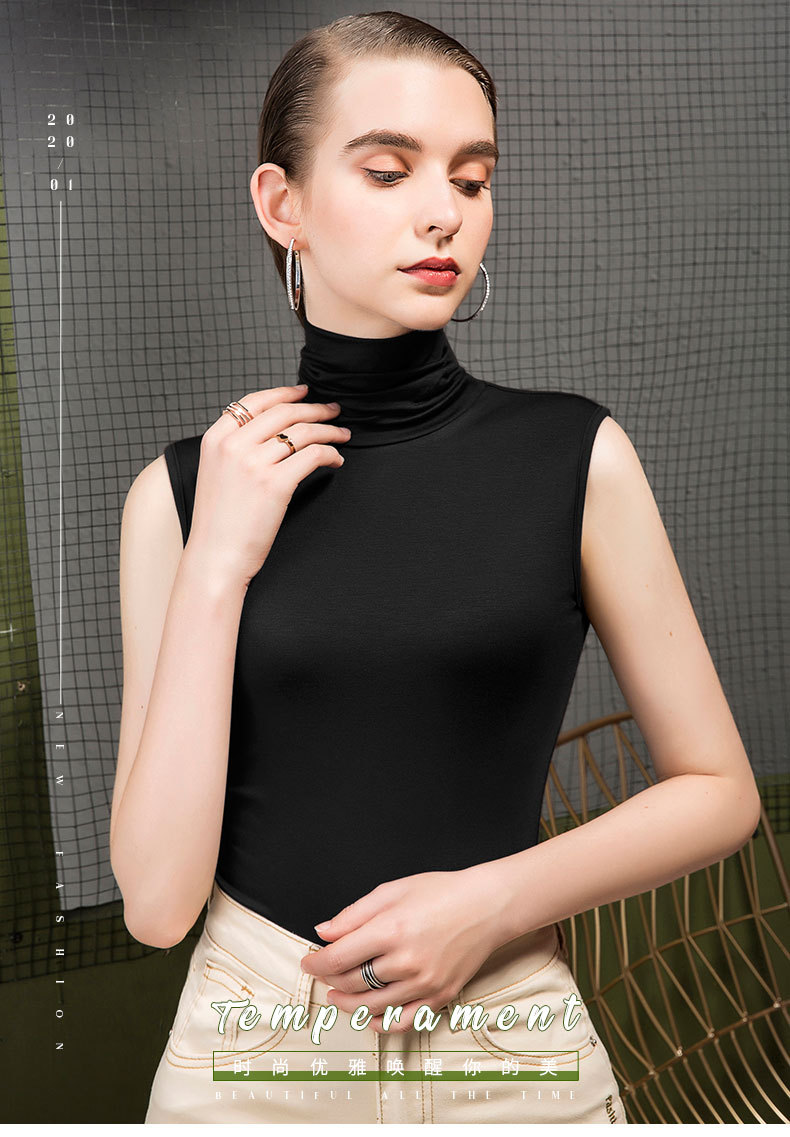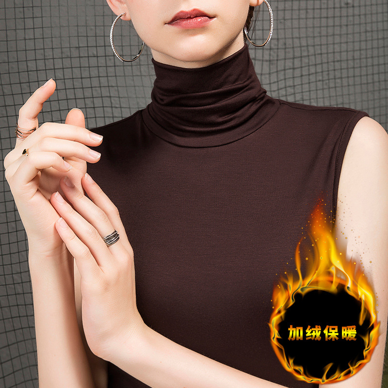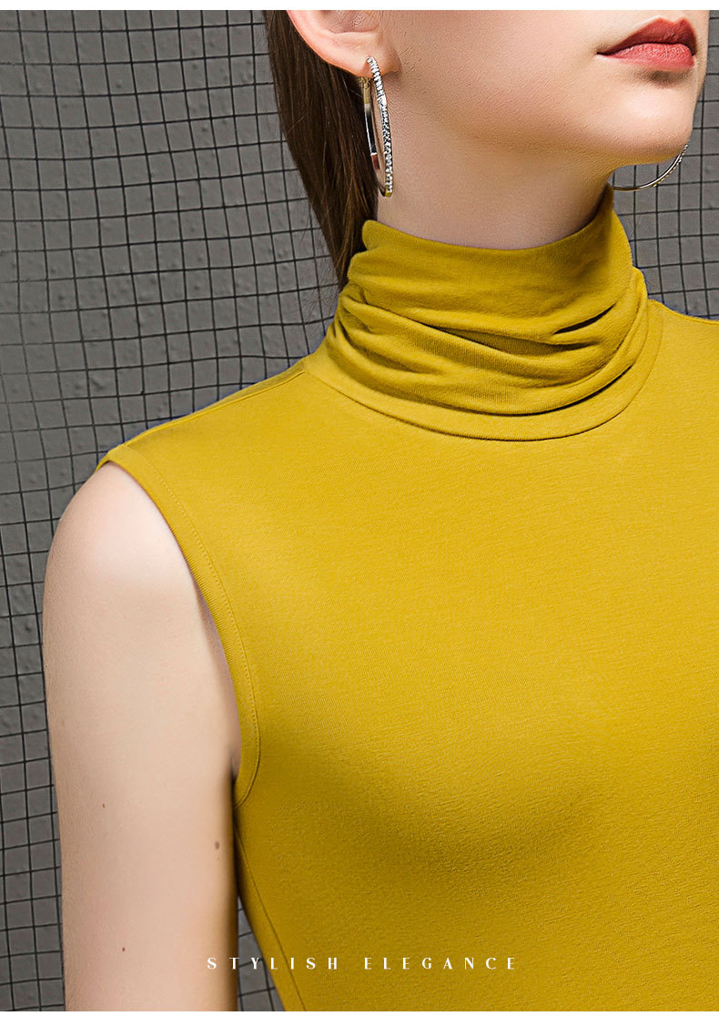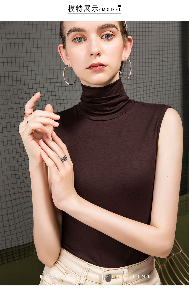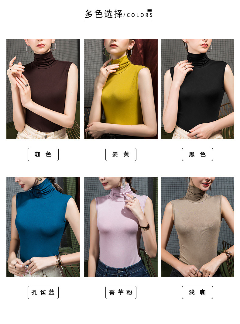가을 하이 칼라 베이스 셔츠 여성용 내부 슬림핏 민소매 솔리드 컬러 베이스 파일 칼라 모달 여름 티셔츠