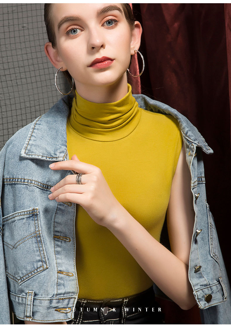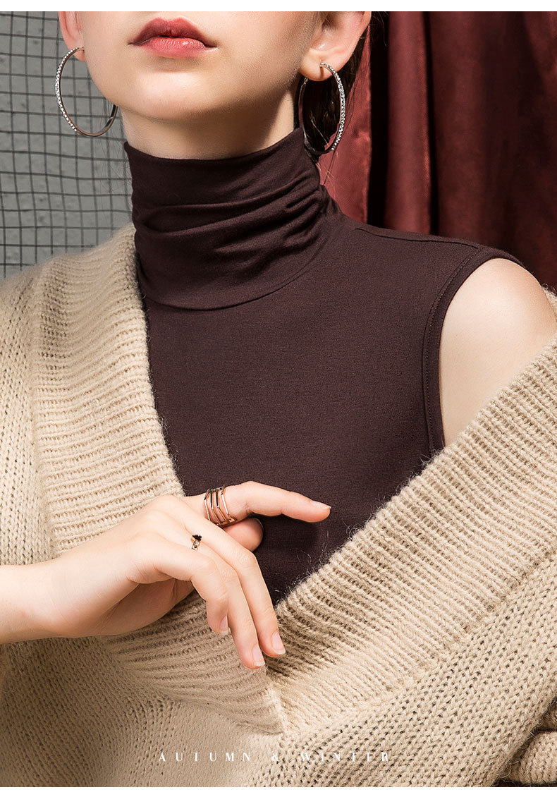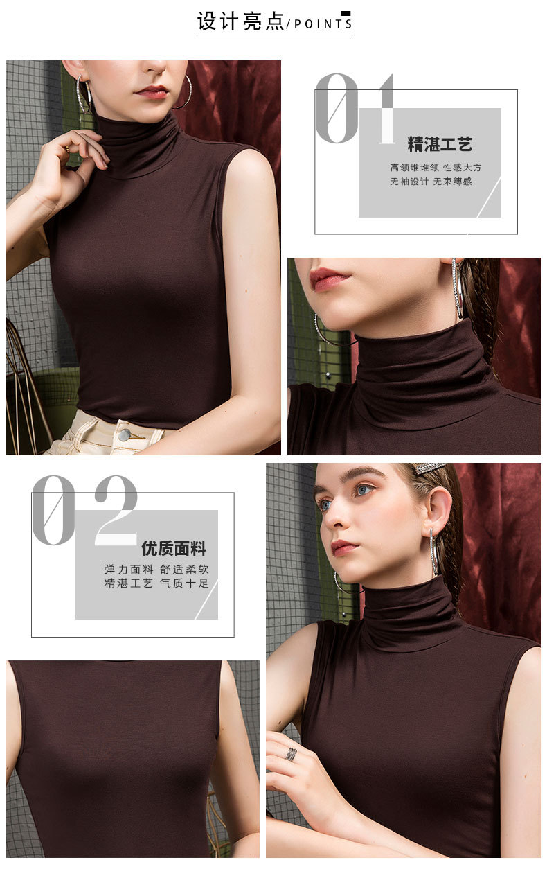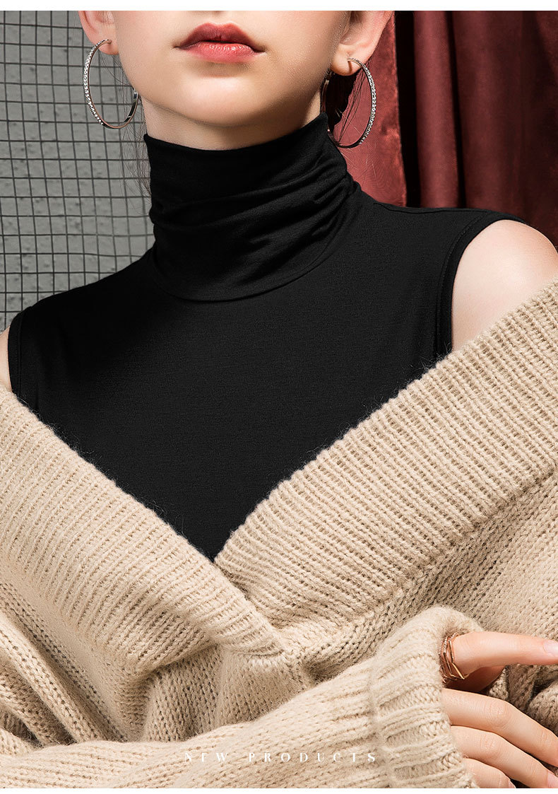 가을 하이 칼라 베이스 셔츠 여성용 내부 슬림핏 민소매 솔리드 컬러 베이스 파일 칼라 모달 여름 티셔츠