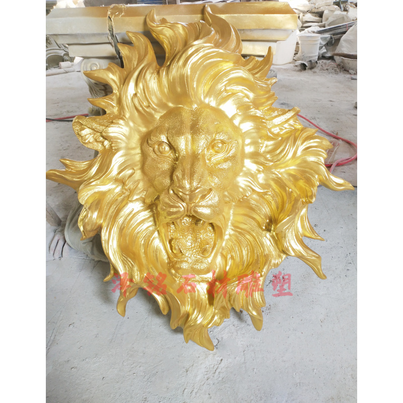 재고 유리 섬유 강화 플라스틱 물 스프레이 사자 머리 조각 모조 구리 분수 사자 머리 수도꼭지 공원 숲 벽 흐르는 물 펜던트스토어 가기