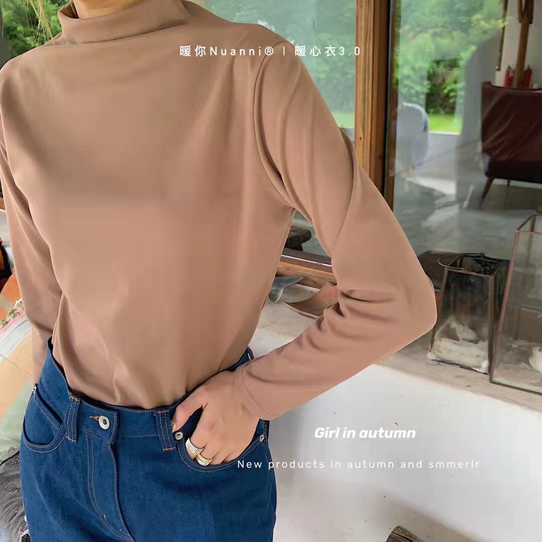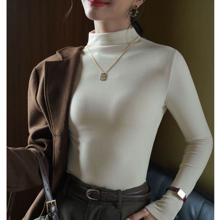 벨벳 하프 하이 칼라 베이스 셔츠 여성용 가을과 겨울 새로운 두꺼운 단색 여성용 슬림핏 올매치 탑 하트 보온 의류스토어 가기