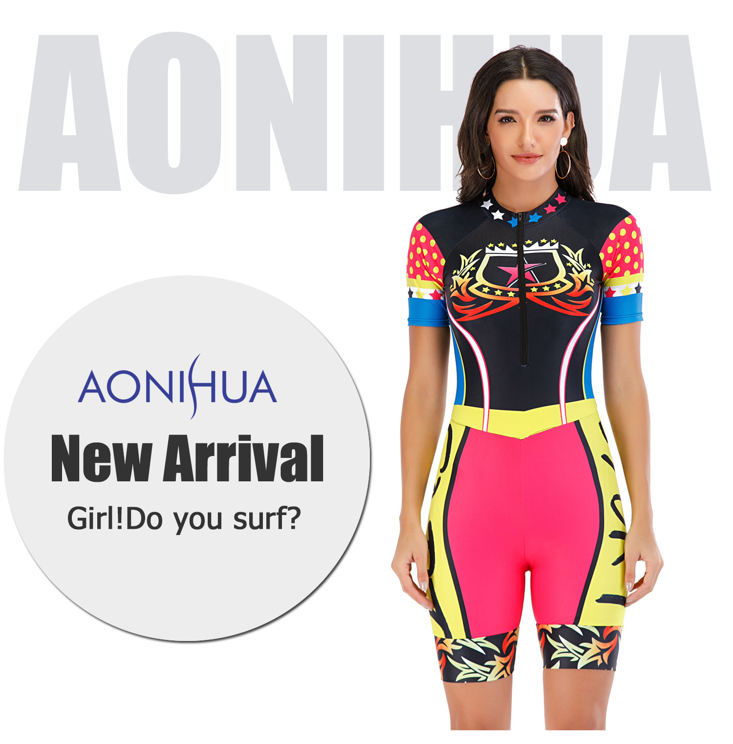 유럽과 미국 대외 무역 원피스 반팔 서핑 슈트 자외선 차단제 여성용 수영복 플랫 앵글 다이빙 세트 섹시 수영복 오니 플라워 8894