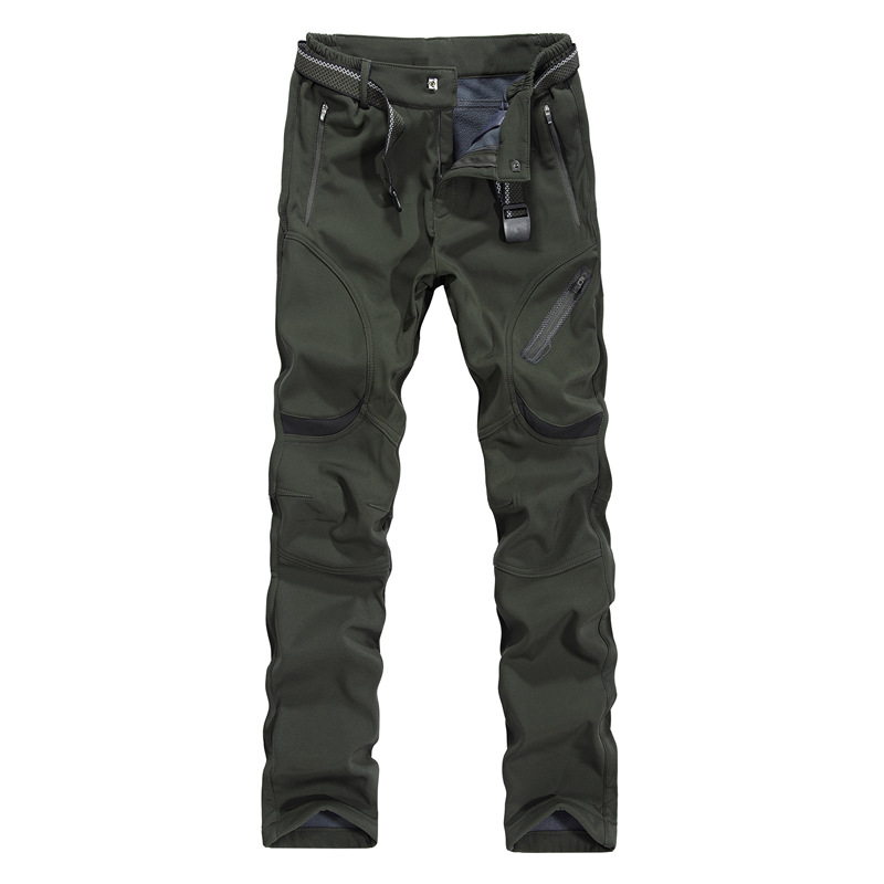 남성용 겨울 야외 플러스 사이즈 부드러운 쉘 방풍 느슨한 등산 바지 여성용 두꺼운 따뜻한 양털 길이 바지 크로스 보더 충전 바지