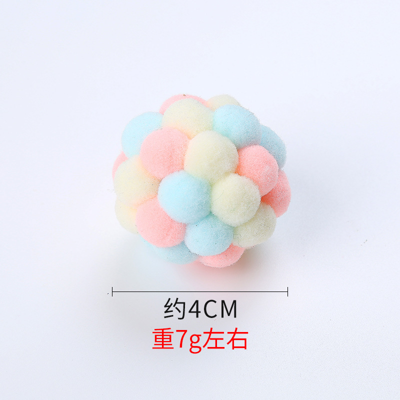 애완 동물 용품 국경 간 다채로운 수제 벨 공 탄성 공 대화 형 추구 플러시 공 고양이 자기 즐거움 장난감스토어 가기