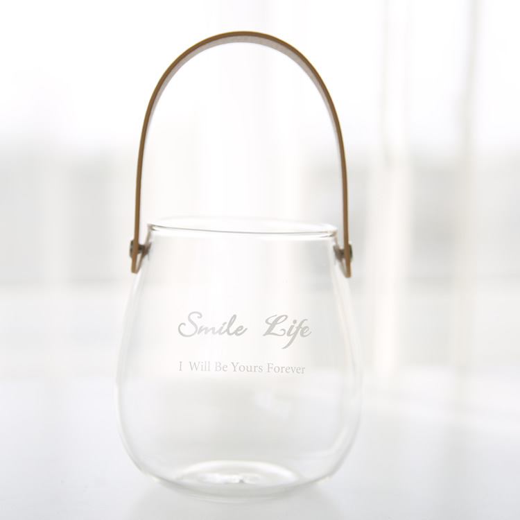 북유럽 크리에이티브 가죽 휴대용 유리 꽃병 수경 식물 꽃 유리 컵 말린 꽃 공예 크리에이티브 홈스토어 가기