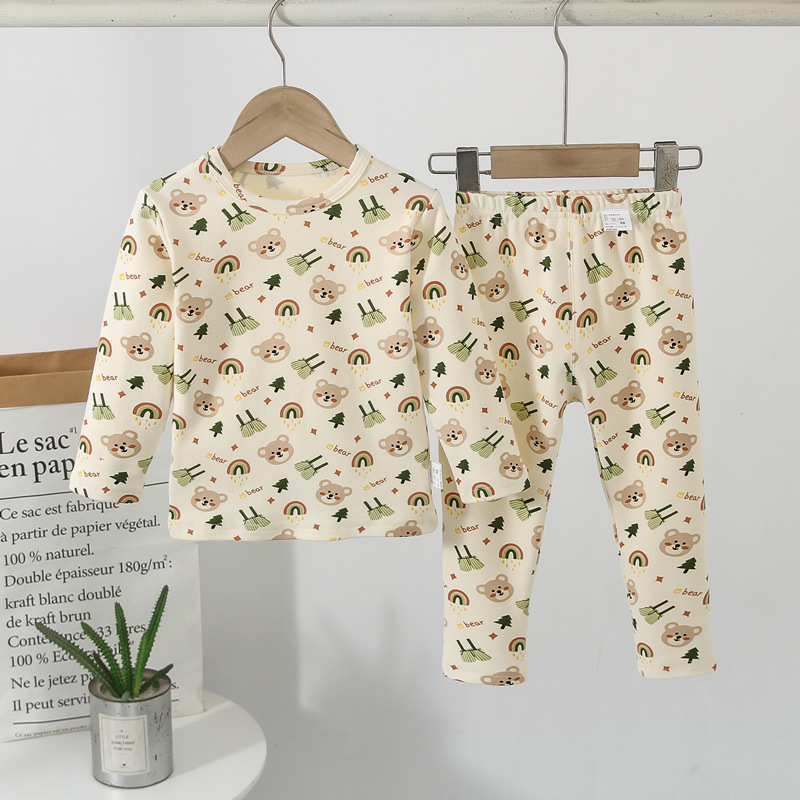 어린이 가을 옷과 바지 세트 가을과 겨울 옷 새로운 소년 잠옷 가정 옷 신장 면 만화 여성 속옷 세트