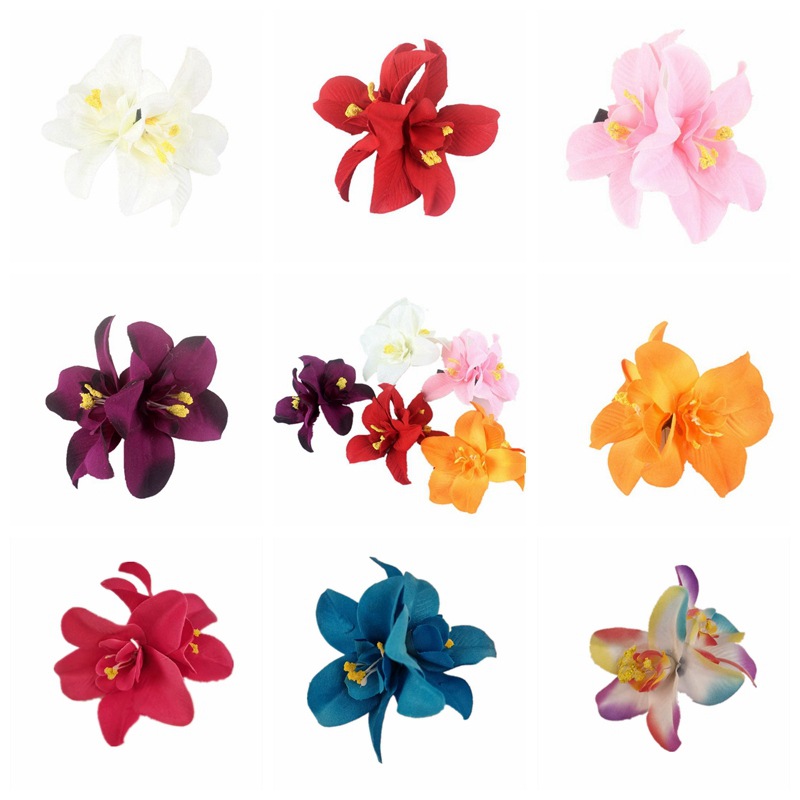 뜨거운 판매 새로운 더블 난초 머리핀 보헤미안 해변 휴가 머리핀 시뮬레이션 꽃 머리핀 여성을위한