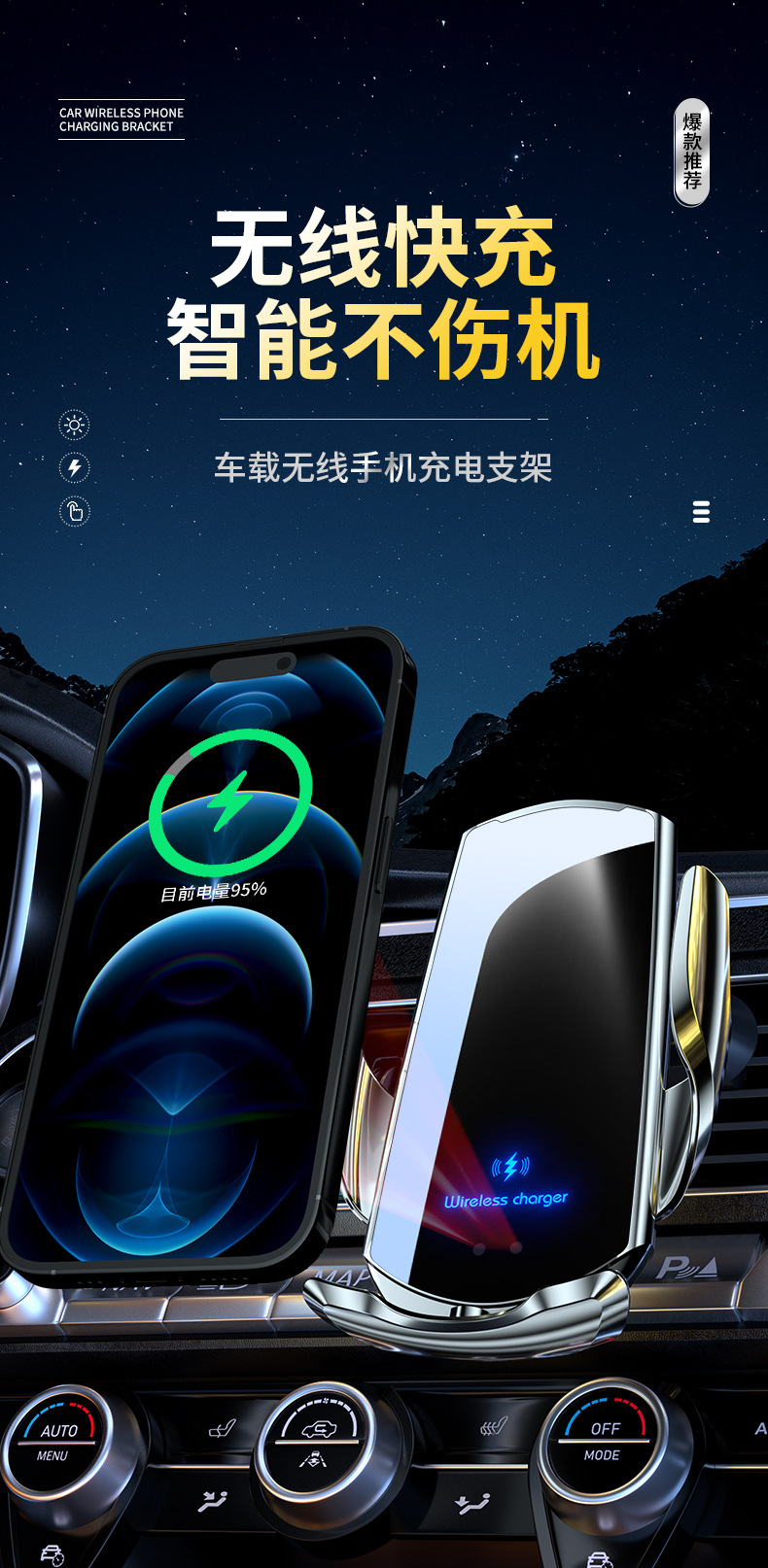 매직 클립 Q3 차량용 무선 충전 휴대폰 거치대 15W 인덕션 개폐용 자동차 내비게이션 랙 용품 크로스보더