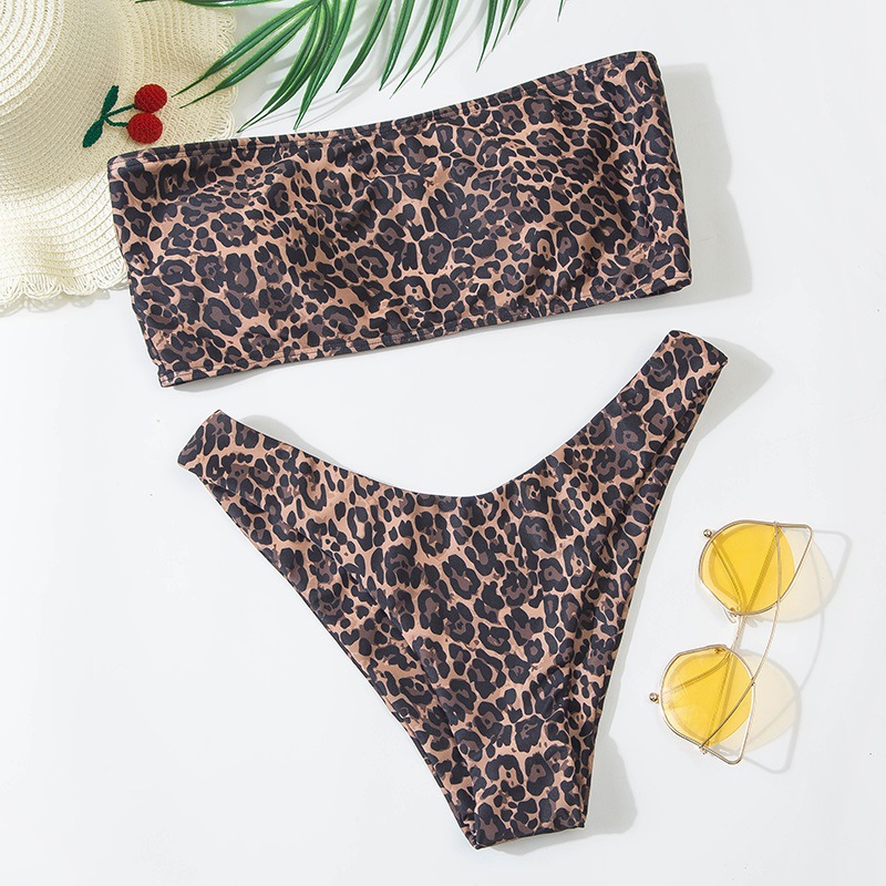 2020 새로운 AliExpress 아마존 레오파드 무늬 분할 스트랩리스 유럽과 미국의 섹시한 비키니 비키니