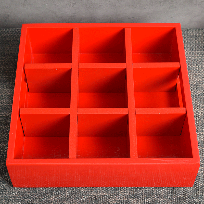창조적 인 빨간 나무 상자 Jiugongge 부엌 용품 조미료 식기 유리 세트 빨간 jiugongge 저장 상자스토어 가기
