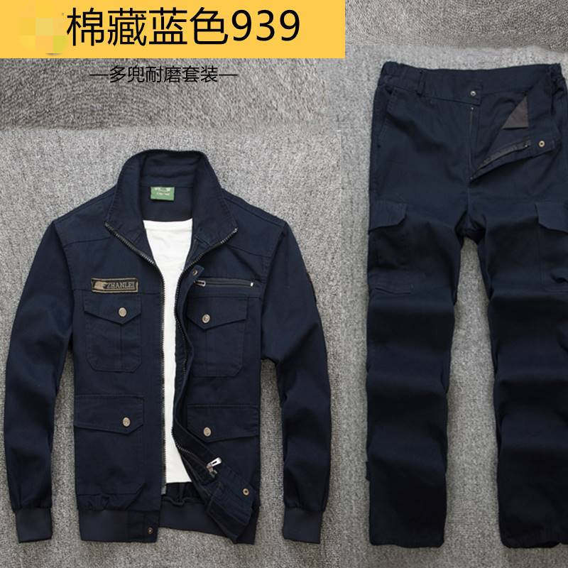 새로운 남자와 여자는 노동 보호 전기 용접 작업 의류 두꺼운 착용 방지 멀티 포켓 보호 의류 네이비 훈련 의류 기계 및 전기 자동 수리를 착용 할 수 있습니다스토어 가기