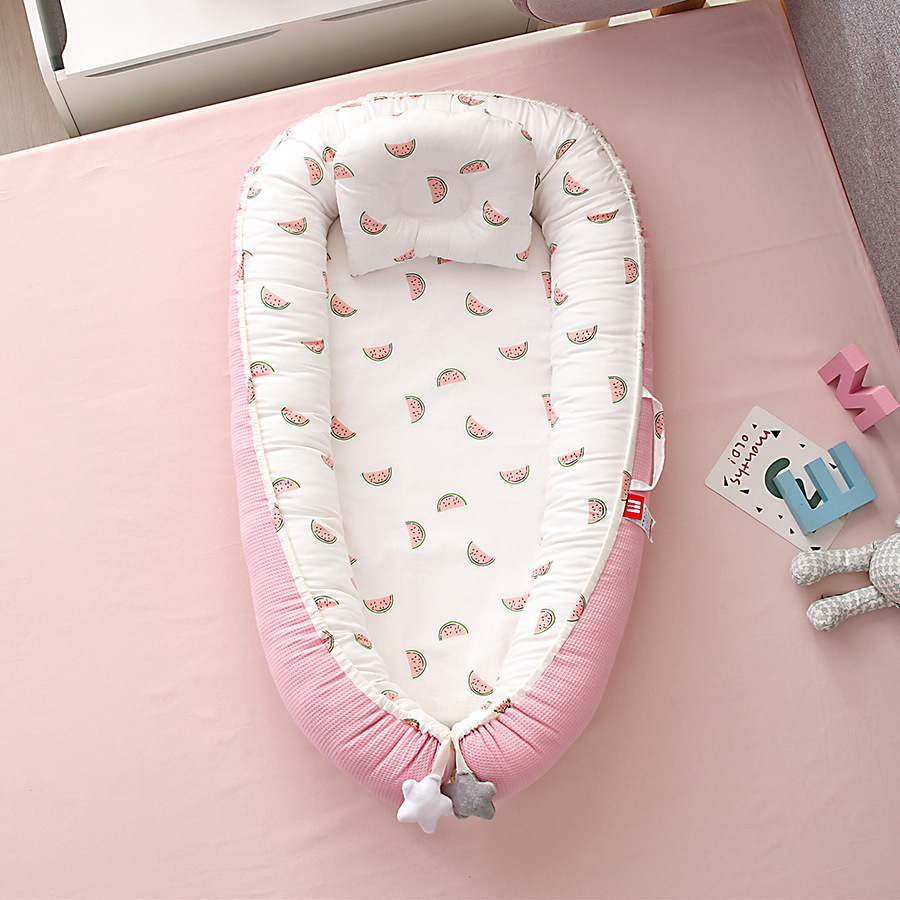 통기성과 탈부착이 가능한 휴대용 아기침대, 중간 사이즈 침대, 생체모방 아기침대, 아기베개, 여행용 아기침대