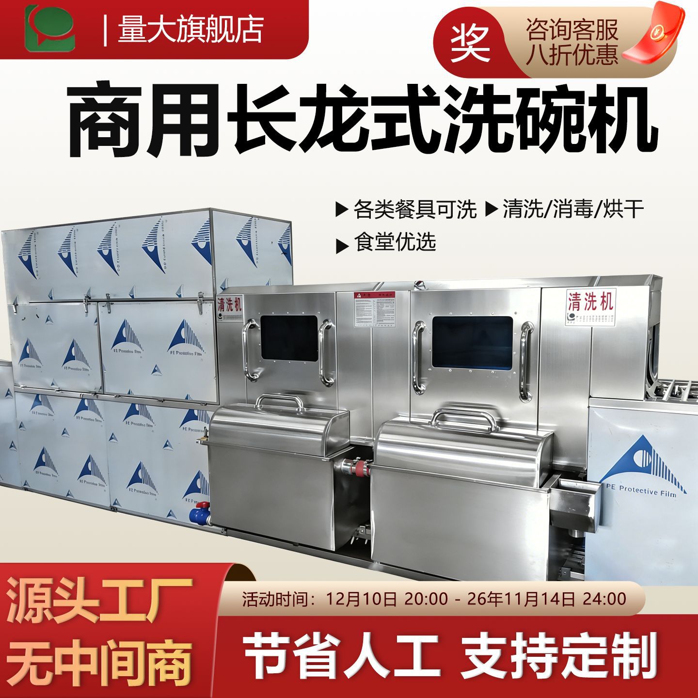 本机型是目前开办中大型餐具消毒公司、中大型饭堂、后厨保洁服务的流水线设备,机器操作2-5人,超低能耗及优越的性价比深受客户采纳。
