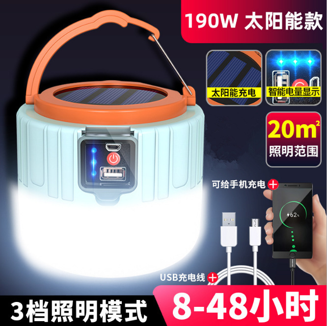 다기능 태양열 충전 원격 제어 비상 전구 조명 캠핑등 텐트 조명 야간 시장 조명 모바일 조명