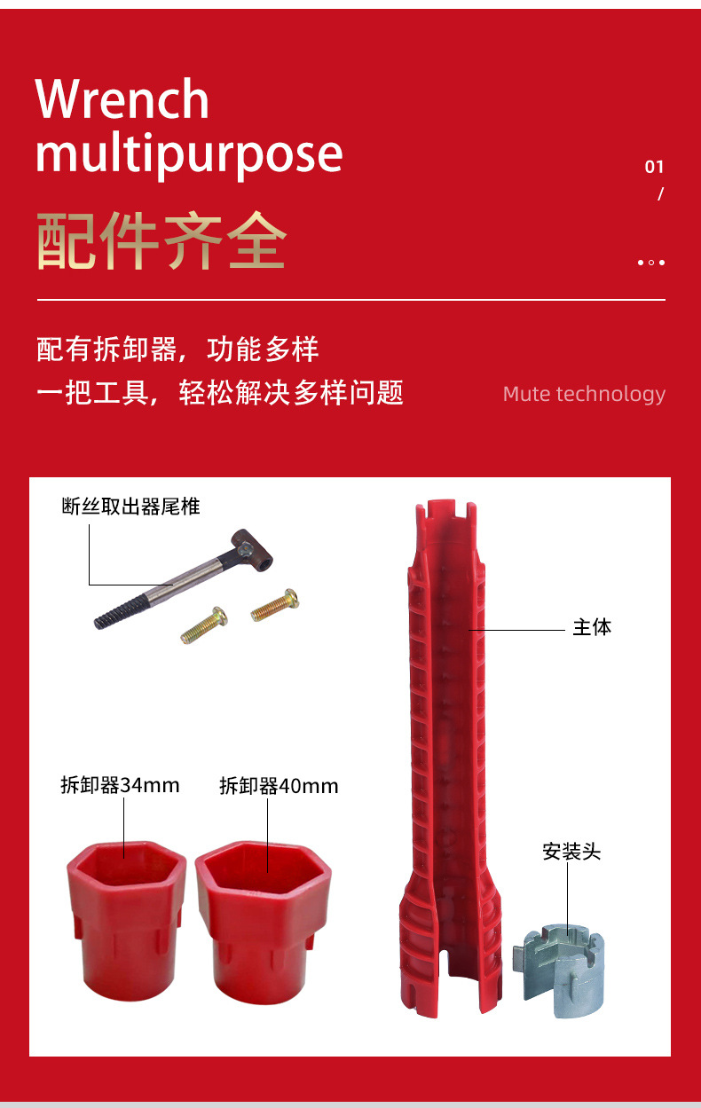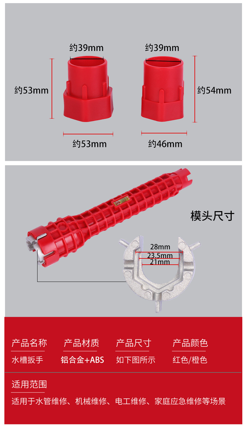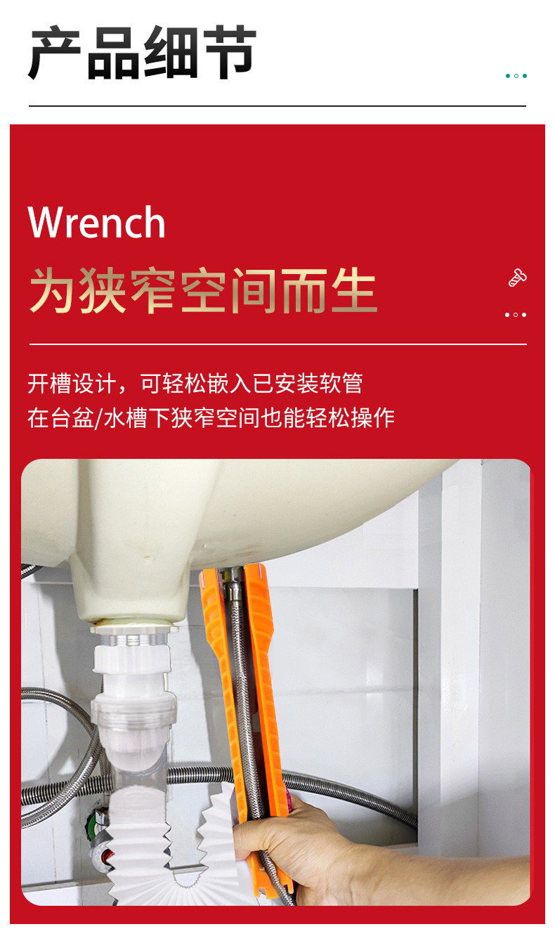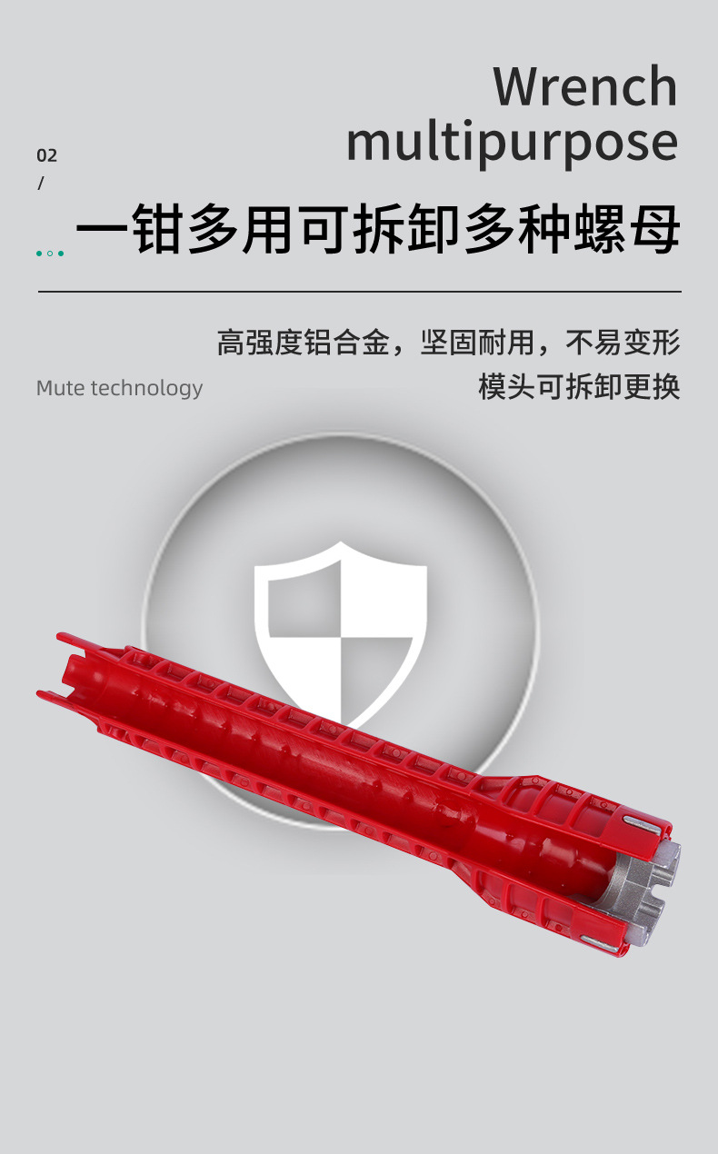 8-in-1 다기능 욕실 렌치 싱크 렌치 나사 조절 렌치 수도관 수도꼭지 온수기 렌치
