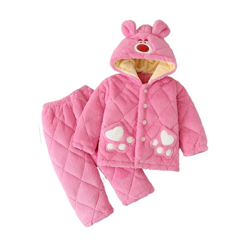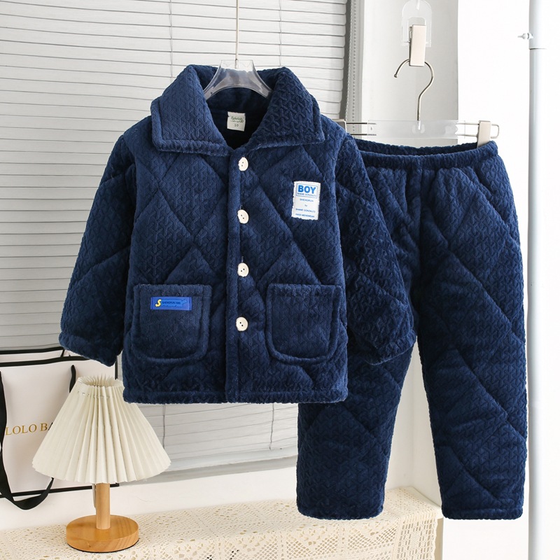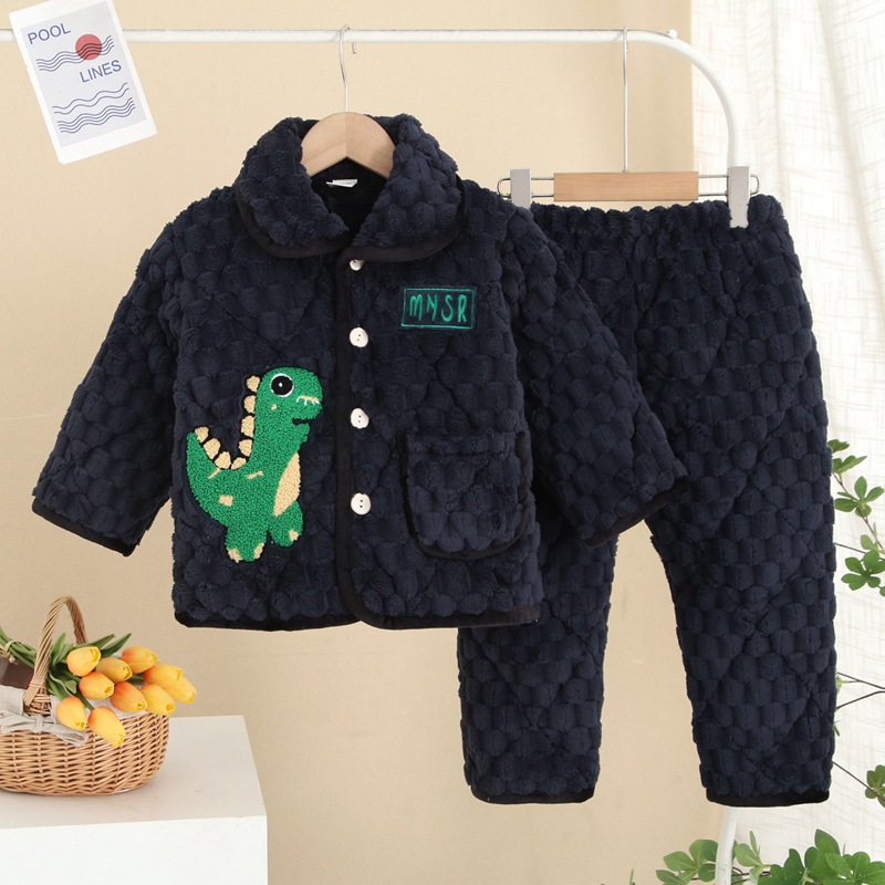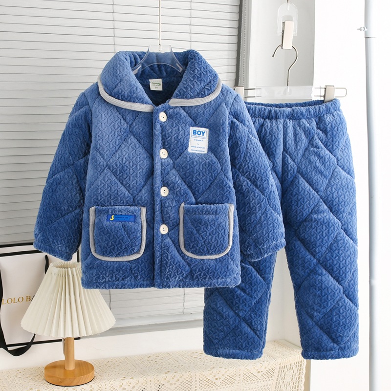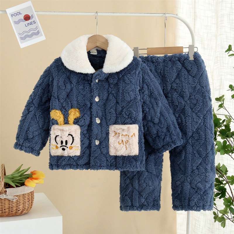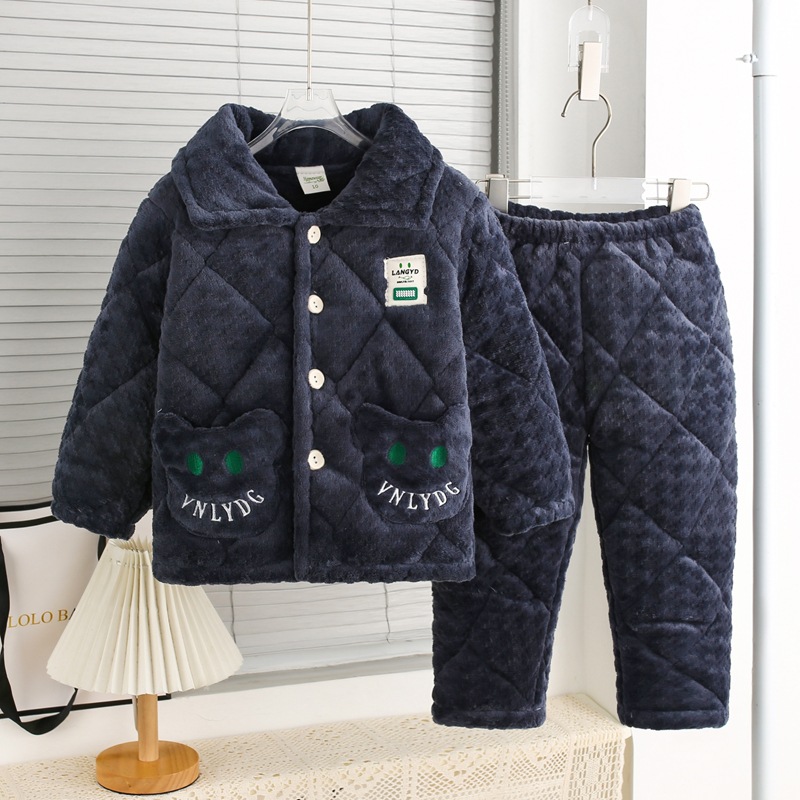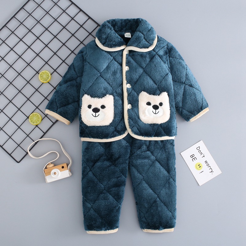 깨진 크기 클리어런스 어린이 플란넬 파자마 세트 3 층 두꺼운 코튼 산호 양털 홈 의류 겨울 특별 가격스토어 가기
