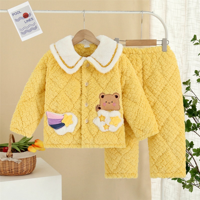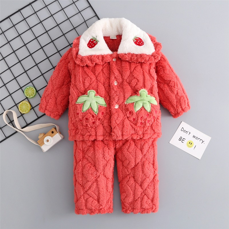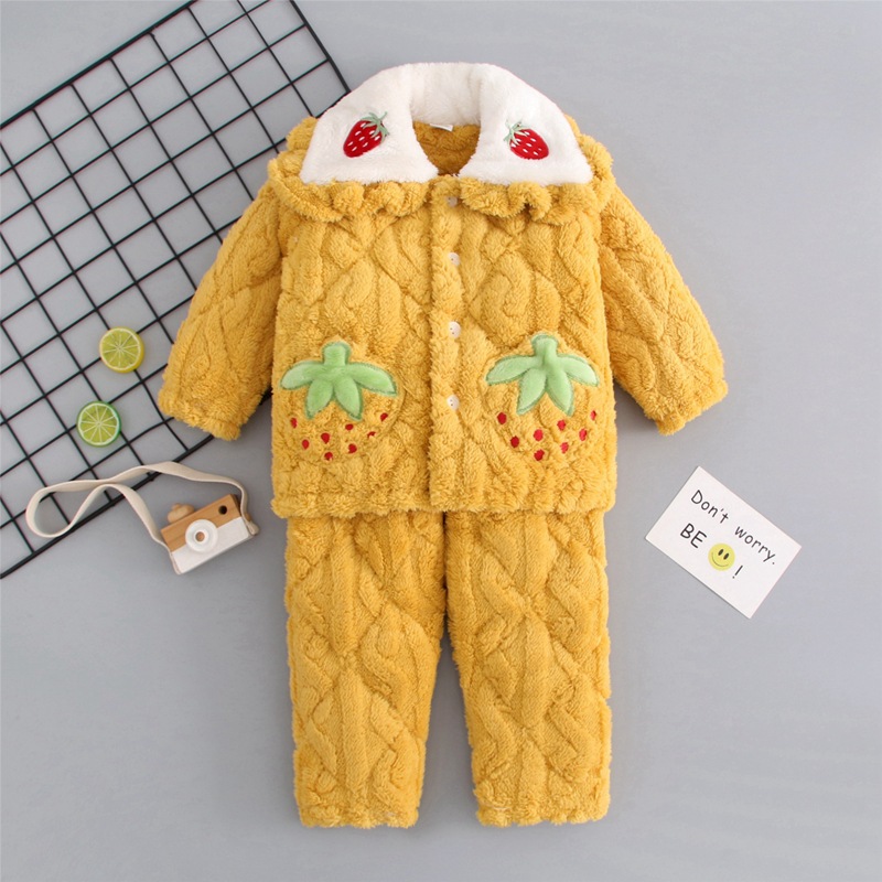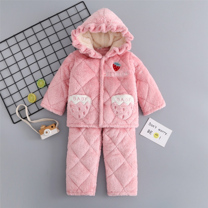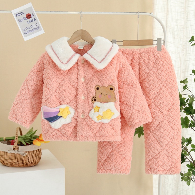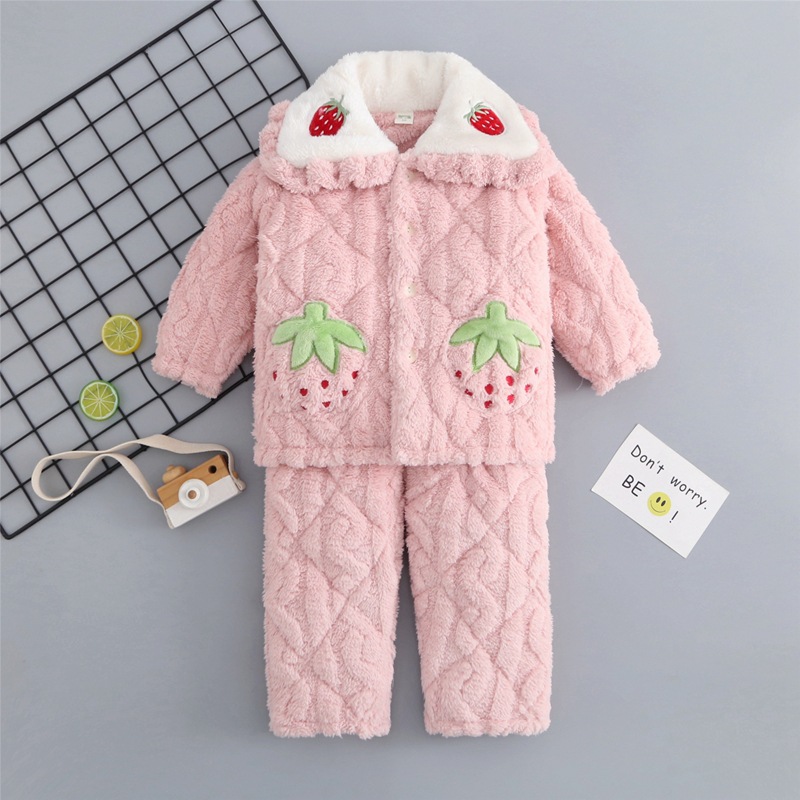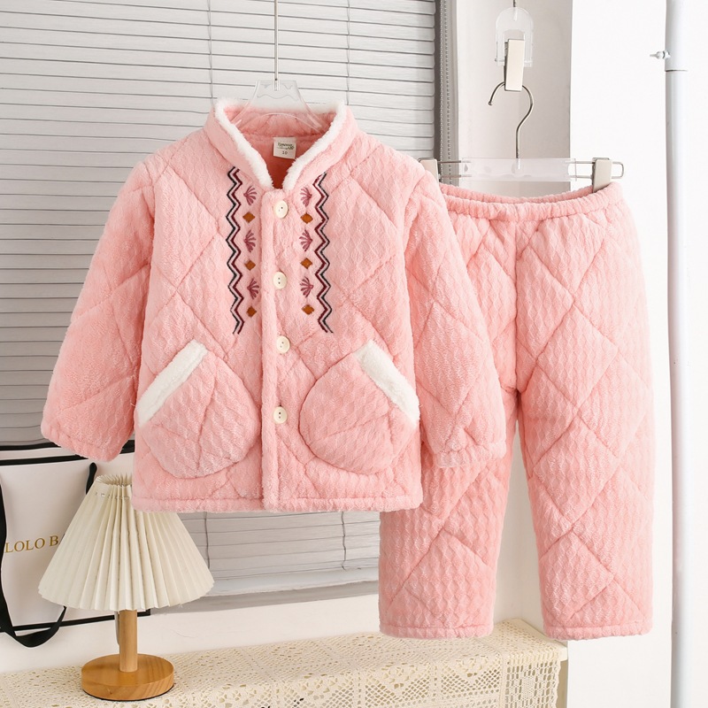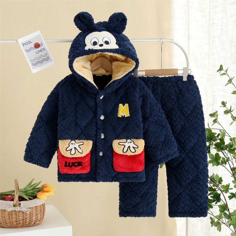 깨진 크기 클리어런스 어린이 플란넬 파자마 세트 3 층 두꺼운 코튼 산호 양털 홈 의류 겨울 특별 가격스토어 가기