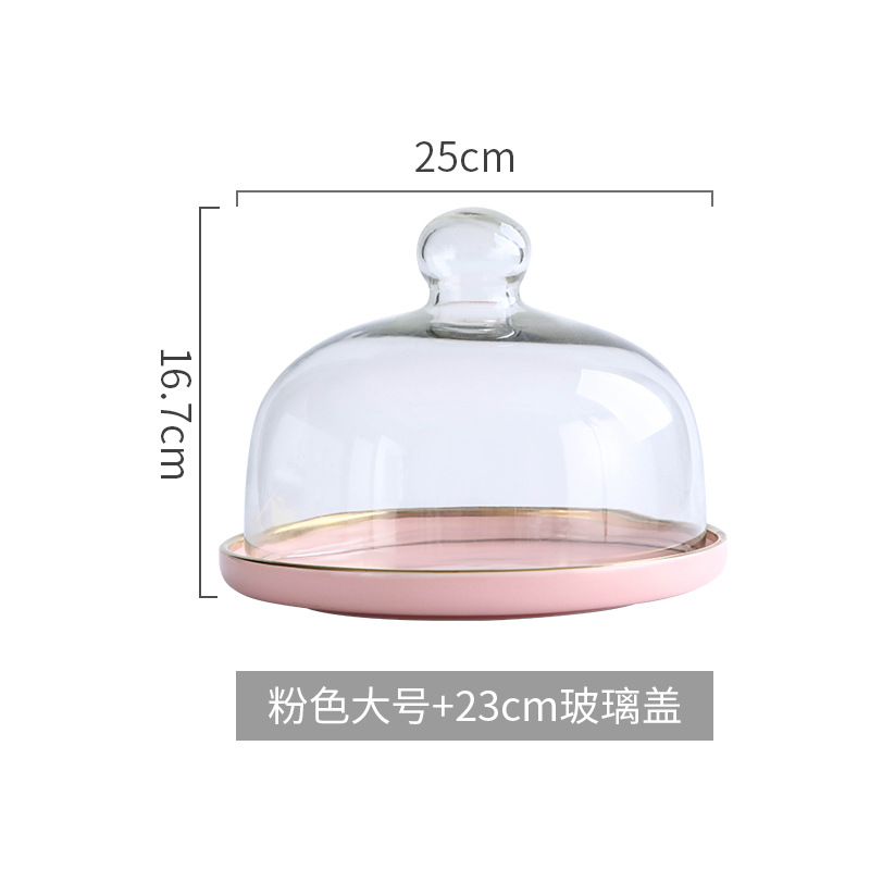 북유럽 스타일 스낵 플레이트 투명 유리 뚜껑 케이크 플레이트 웨스트 포인트 베이킹 접시 스낵과 과일 저장 플레이트