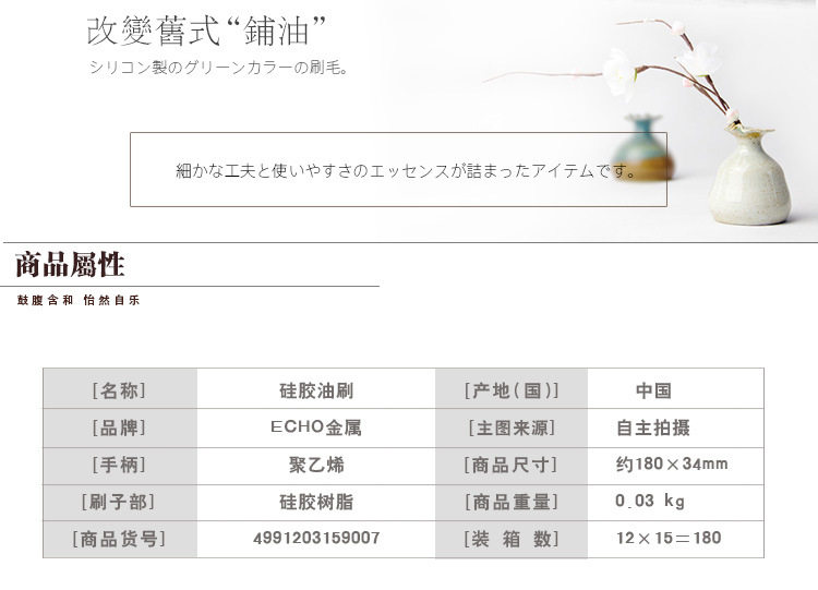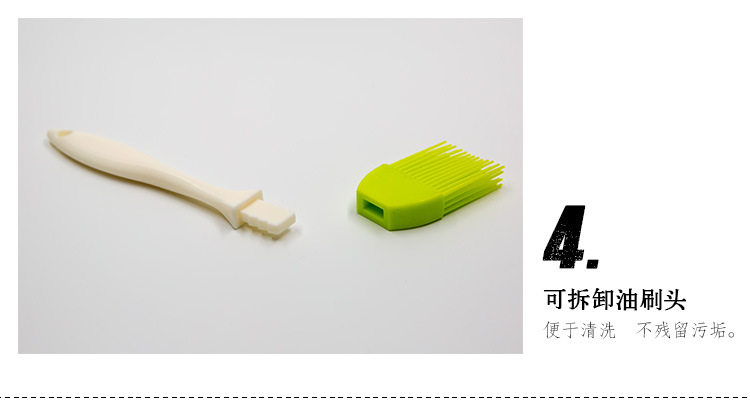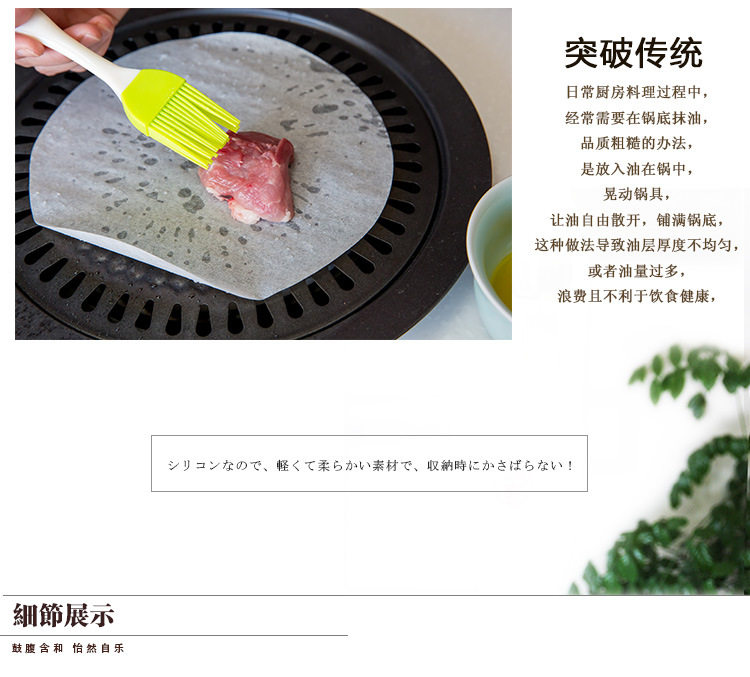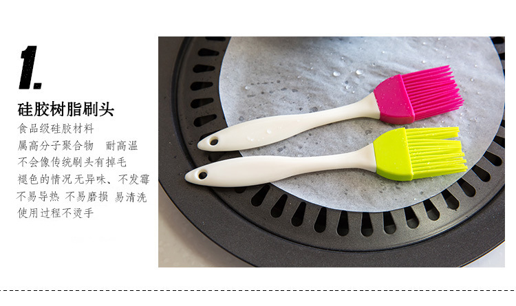 温馨提示:硅胶刷头,请不要直接接触火,请不要直接放到加热中,温度较高的铁板或锅中。